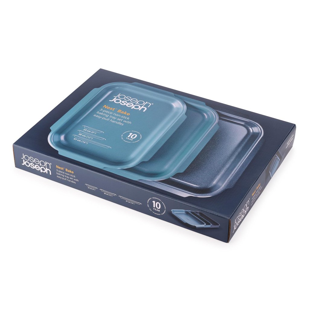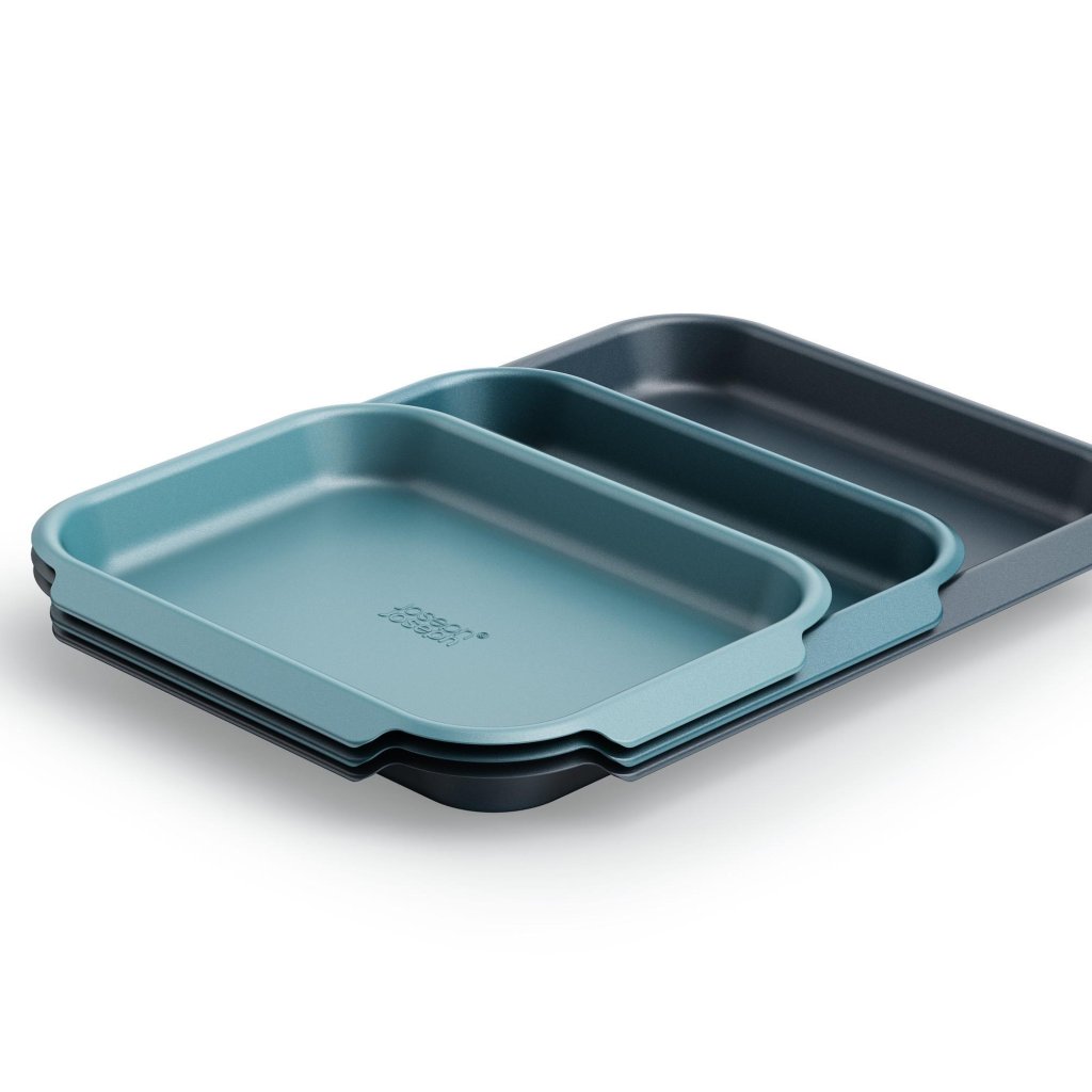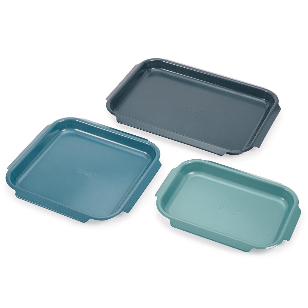 Blacha do pieczenia z podwyższonymi brzegami NEST BAKE 45064, zestaw 3 szt., niebieski, stal, Joseph Joseph