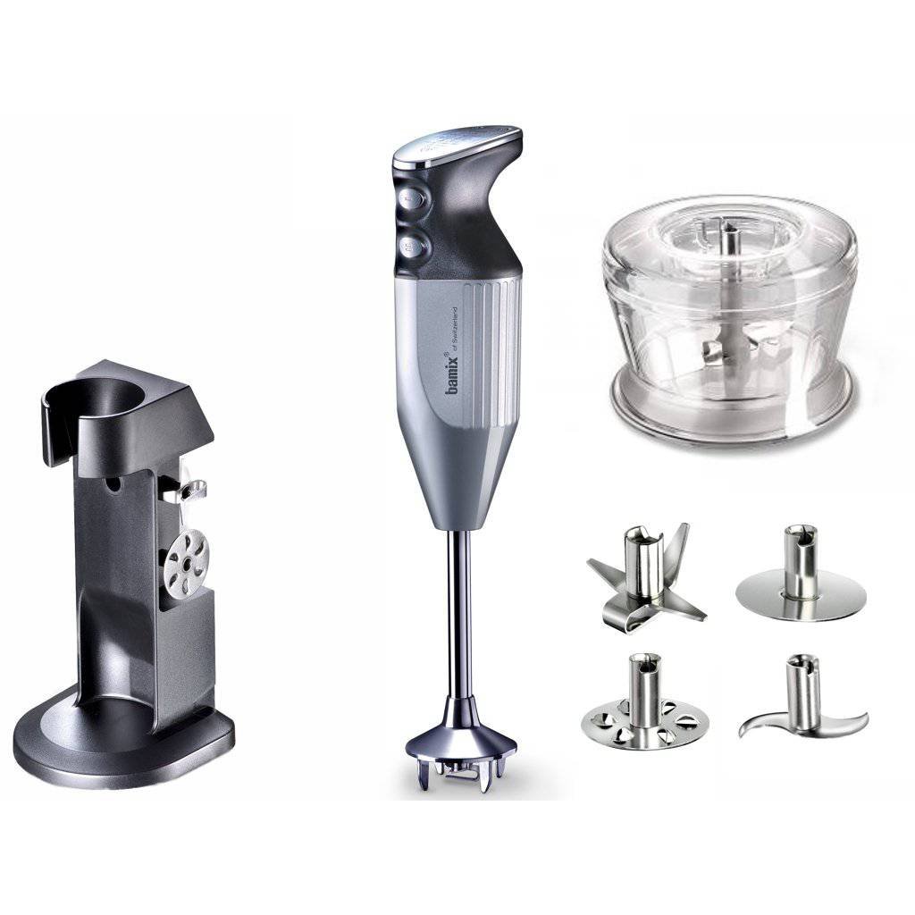 Elegancki srebrny blender ręczny bamix® DE LUXE zaskakuje wyrafinowanym designem i wielofunkcyjnymi możliwościami już od pierwszego użycia. Oprócz podstawowych akcesoriów, w skład zestawu wchodzi również młynek o pojemności 100 ml, który umożliwia bamix® siekanie i mielenie wszelkiego rodzaju suchych składników, np. cukru, przypraw, kawy, orzechów lub wanilii.