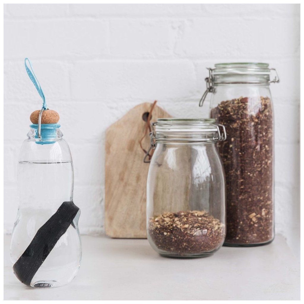 - kształt butelki został specjalnie zaprojektowany, aby binchotan pozostawał na swoim miejscu i nie przemieszczał się w butelce