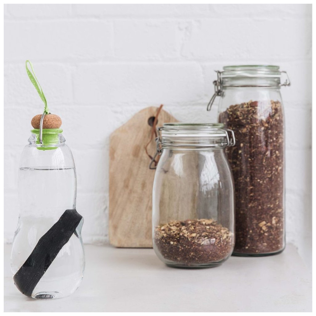 • kształt butelki został specjalnie zaprojektowany, aby binchotan pozostawał na swoim miejscu i nie przemieszczał się w butelce