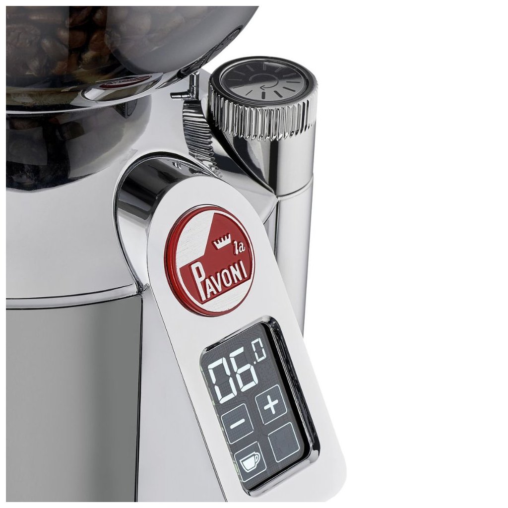 Młynek do kawy CILINDRO od La Pavoni to doskonałe akcesorium dla każdego, kto potrzebuje zmielić porcję kawy tuż przed jej użyciem. Młynek ma u góry pojemnik na ziarna z Tritanu o pojemności 500 g i umożliwia regulację stopnia przemiału. Młynek jest również wyposażony w wyświetlacz LCD z łatwym wyborem różnych programów mielenia i funkcji, takich jak pojedyncza czy podwójna porcja, tryb ciągły i ustawienie czasu. Oferuje również wygodny uchwyt na filtr , dzięki któremu nie musisz trzymać go podczas mielenia. Cylindryczny, srebrny korpus z chromowanego aluminium doskonale sprawdzi się w minimalistycznych kuchniach, w których kawa jest parzona z klasą.