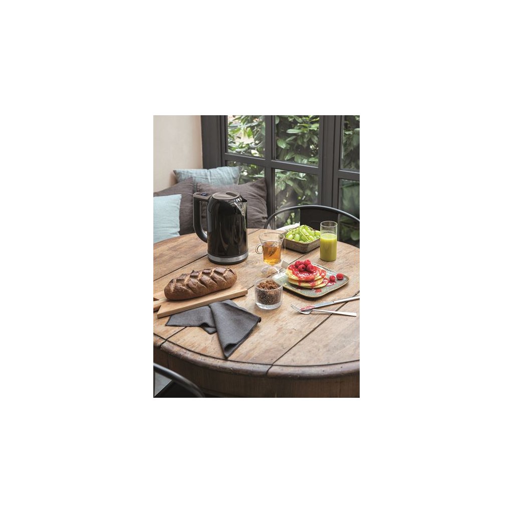 Czajnik wykonany z lakierowanej stali nierdzewnej może pomieścić do 1,7 l. Temperatura grzania może być regulowana w sześciu różnych ustawieniach w skali 50-100 °C. Opcja ta jest szczególnie doceniana przez miłośników herbaty, którzy często potrzebują niższej temperatury, a wykorzystasz ją również do innych czynności kuchennych.