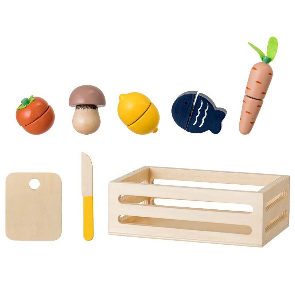 Zabawka zestaw warzyw z deską do krojenia i pojemnikiem GUILA, 8 el., drewno, Bloomingville