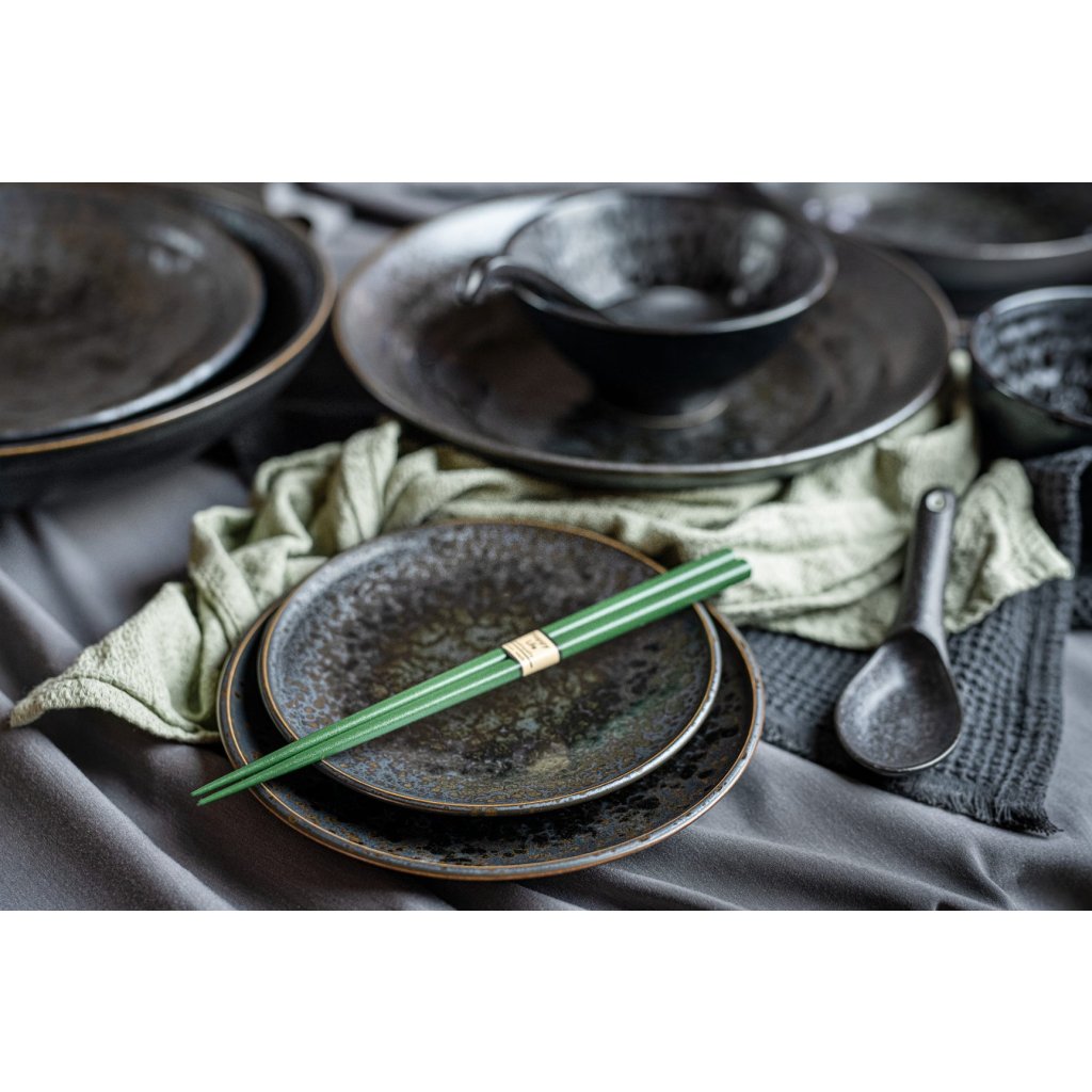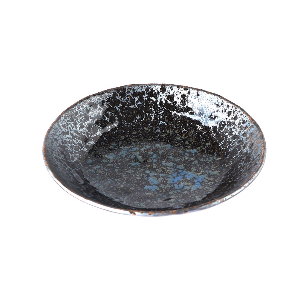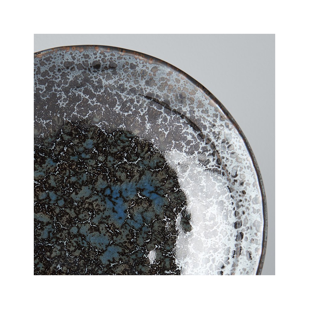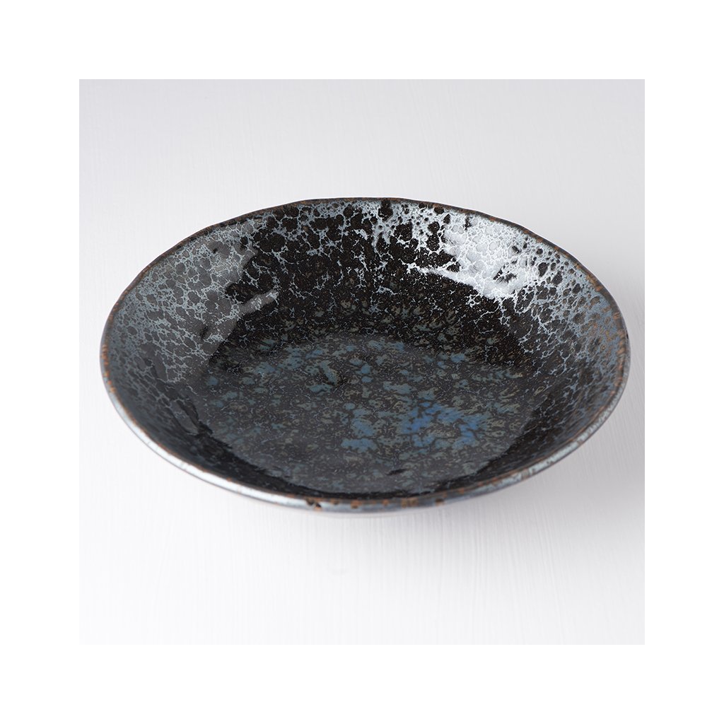 Duża płytka miska z kolekcji Black Pearl marki MIJ wykonana jest ręcznie z trwałej ceramiki, która nie zawiera szkodliwych zanieczyszczeń ani metali ciężkich. Produkowana jest przez japońskich mistrzów, których tradycja sięga XII wieku. Farby są wysokiej jakości, nie ł uszczą się i nie zawierają żadnych szkodliwych substancji.