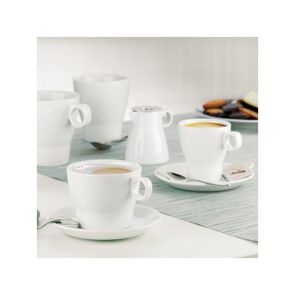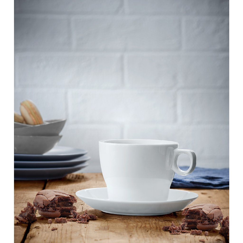 Szeroki kształt filiżanki do café au lait Barista ze spodkiem nawiązuje do klasycznego francuskiego "bol" i pozwala na zanurzenie w filiżance np. herbatników.
