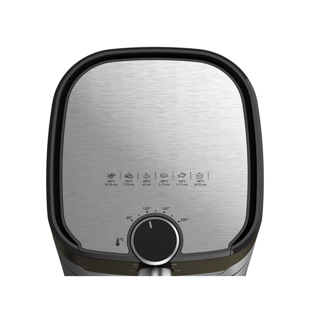 Frytownica oferuje regulację temperatury w zakresie od 80°C do 200°C oraz intuicyjne pokrętło sterujące z 60-minutowym timerem dla perfekcyjnych rezultatów za każdym razem. Płyta grillowa wykonana z odlewu aluminiowego pozwala cieszyć się delikatnym, soczystym mięsem lub warzywami, a pojemność 4,2 litra jest idealna na obiad przygotowany dla nawet 6 osób.