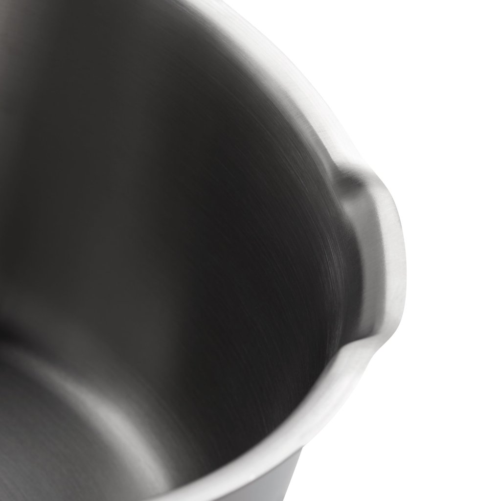 Naczynia Function 4 posiadają również szeroką, zakrzywioną krawędź ułatwiającą przelewanie. Zapobiega to niepożądanemu kapaniu lub spływaniu cieczy po zewnętrznych ściankach naczynia. Wewnętrzna podziałka ułatwia odmierzanie optymalnej ilości płynu. Garnki są łatwe do czyszczenia, oczywiście można je myć w zmywarce.