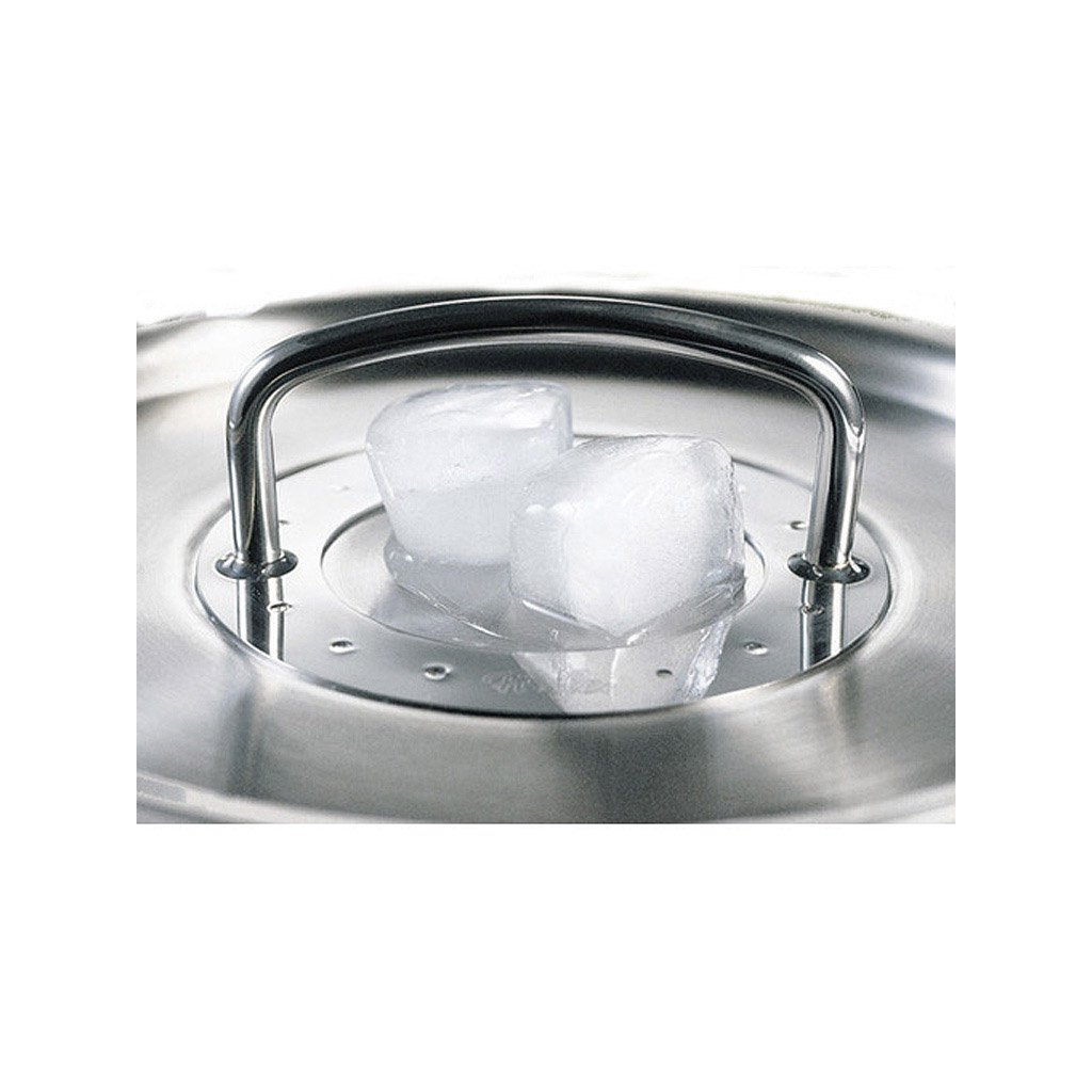 Projektanci skupili się na kształcie pokrywki, dlaczego więc nie podnieść poziomu końcowego smaku prostym detalem? Wewnętrzna krzywizna pokrywy pomaga skondensowanej parze wodnej wpływać z powrotem do garnka - dzięki czemu potrawy są bardziej soczyste i gotują się bardziej naturalnie. Wytrzymała pokrywa ściśle przylega do krawędzi garnka - gotowanie jest bardzo oszczędne pod względem czasu i energii, a przede wszystkim można gotować z minimalną ilością wody, ponieważ ilość wody jest wspomagana przez kondensację.