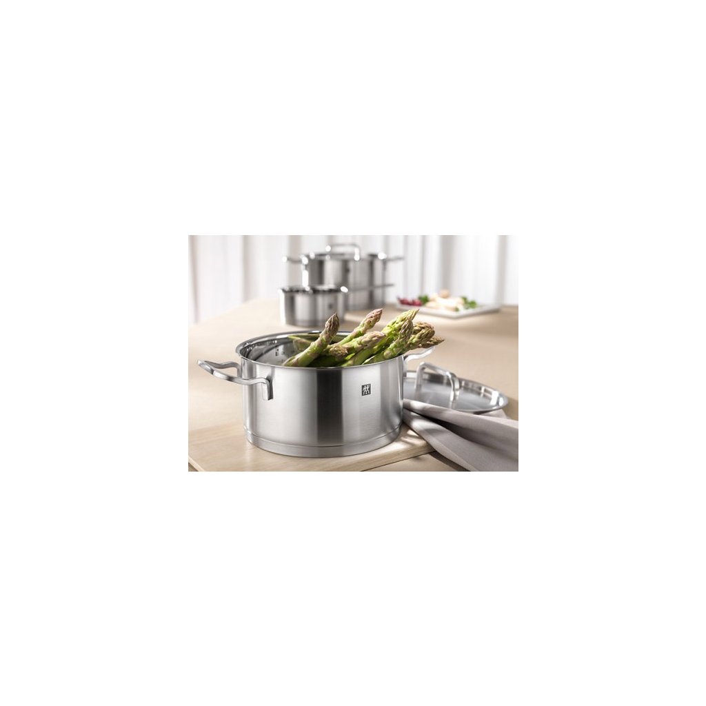 Garnki ZWILLING® Moment to doskonały wybór dla początkujących kucharzy. Dzięki minimalistycznemu designowi i purystycznej koncepcji kształtów, seria ta nadaje się do wszystkich rodzajów kuchni. Prosty, funkcjonalny styl i satynowe wykończenie sprawiają ponadczasowe wrażenie. Garnki zostały zaprojektowane z myślą o osiągnięciu maksymalnej praktyczności i ułatwieniu kucharzowi uzyskania doskonałego rezultatu za każdym razem