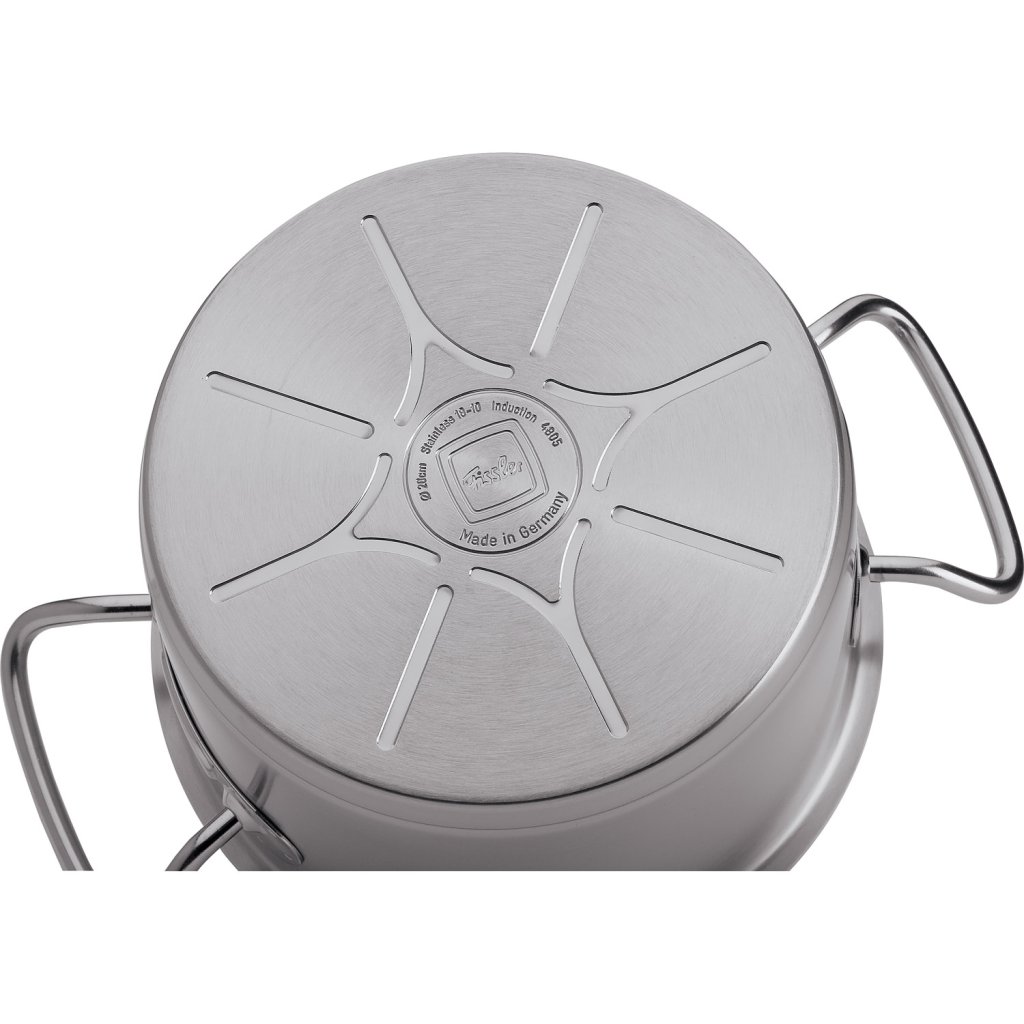 Wysoki garnek dla profesjonalistów z oryginalnej serii pro collection® wykonany jest ze stali nierdzewnej 18/10 (18% chromu, 10% niklu, 72% stali), bardzo łatwej do czyszczenia, higienicznej i wyjątkowo odpornej na korozję. Półmatowa powierzchnia jest idealnie gładka i odporna na odciski palców i plamy z wody. Uchwyty garnka i pokrywy w polerowanym wykończeniu pozostają chłodne podczas całego procesu gotowania. Ich koncepcja jest naprawdę wspaniała - nawet podczas szybkiej pracy szybko znajdziesz optymalny i bezpieczny uchwyt, a Twoje ręce będą z dala od korpusu garnka, więc nie ma ryzyka poparzenia.