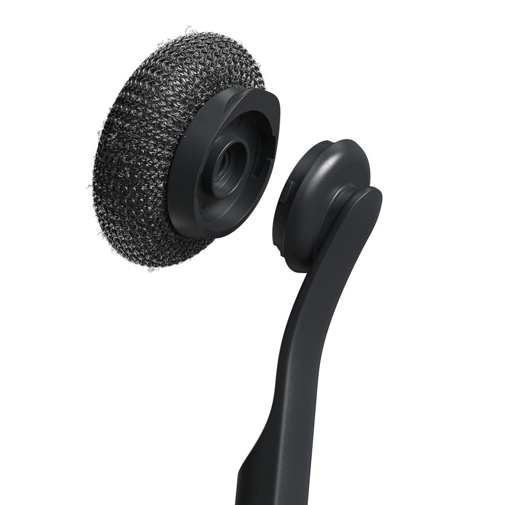 - Konstrukcja ze stali nierdzewnej zapewnia wysoką skuteczność ścierną przy usuwaniu przypalonych resztek jedzenia.