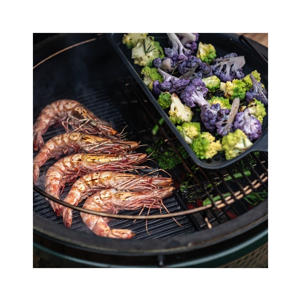 - ceramiczny ConvEGGtor® tworzy naturalną barierę między składnikami a otwartym płomieniem w grillu - świetny pomocnik do powolnego gotowania w niskich temperaturach lub do pieczenia chleba lub pizzy