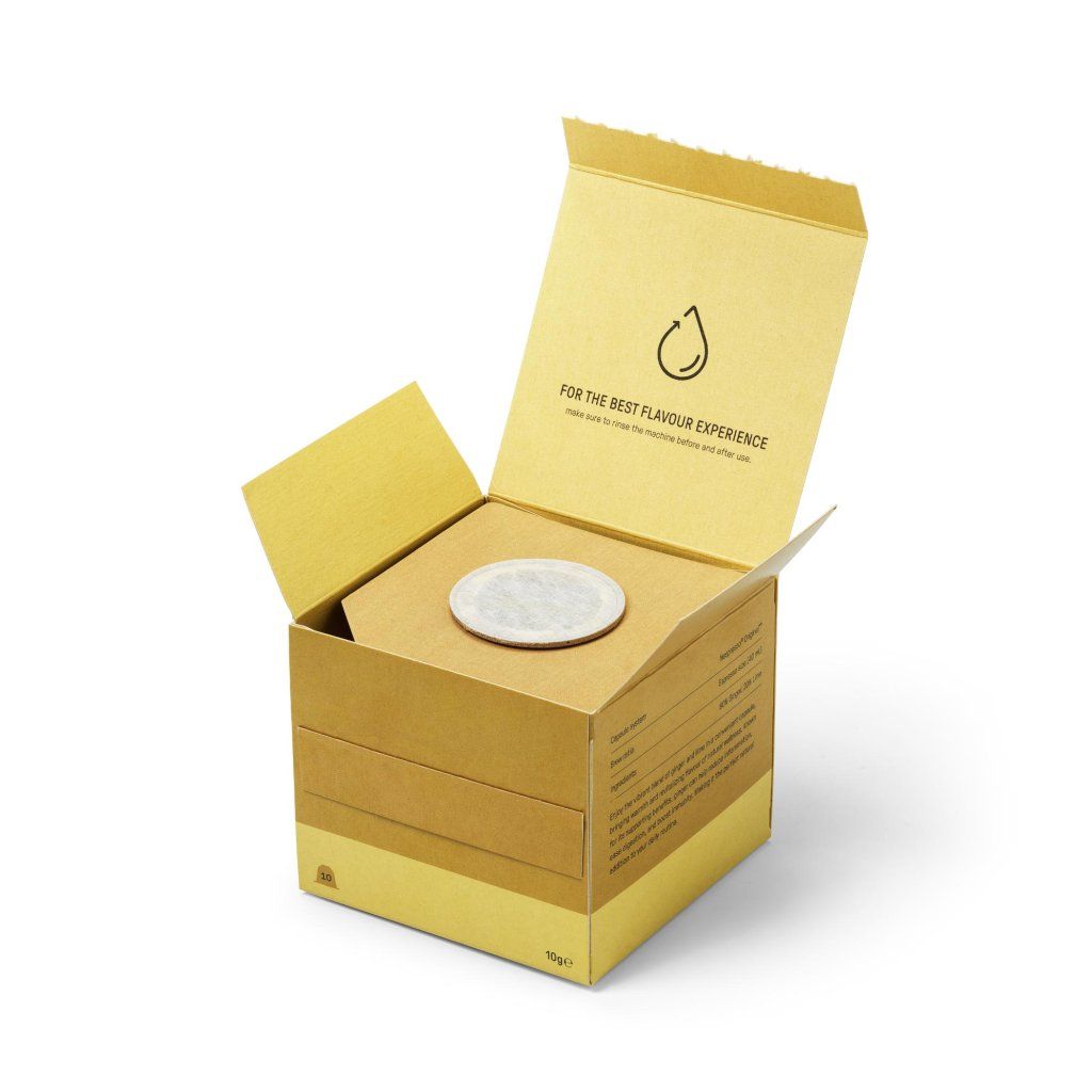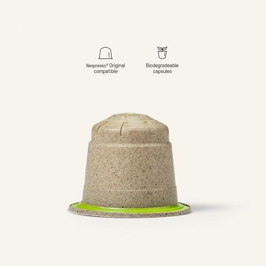 - Kapsułki są w pełni kompostowalne i wykonane z naturalnego produktu ubocznego procesu palenia ziaren kawy, który w przeciwnym razie skończyłby jako odpad.