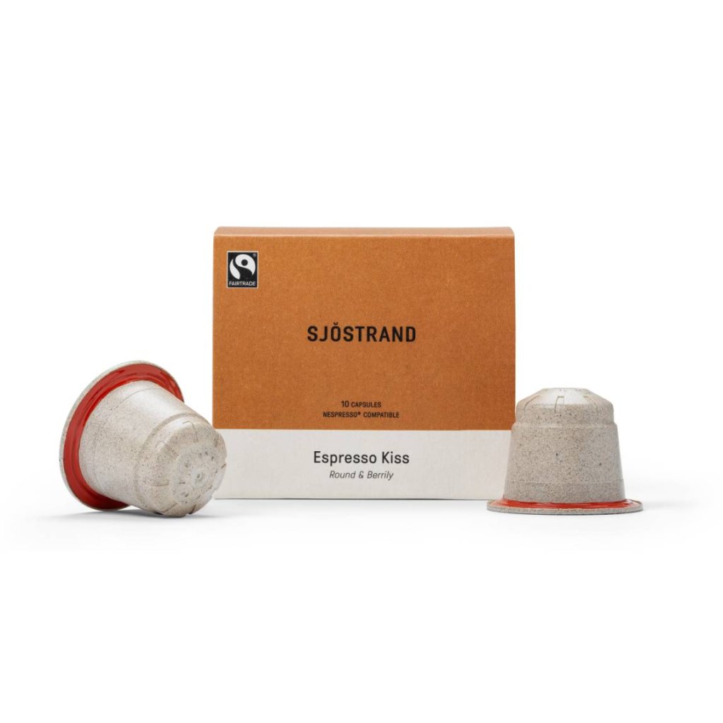 - Kapsułki z kawą Sjöstrand ESPRESSO KISS łączą w sobie niezapomniany smak i prawdziwie troskliwą postawę wobec planety – dokładnie to, na co zasługuje nowoczesna kawa.