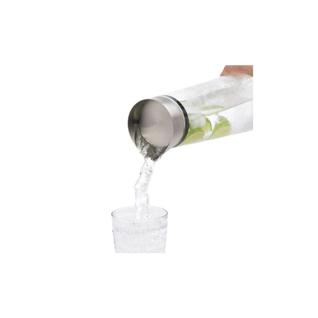 Prosta, a zarazem pomysłowa karafka na wodę ACQUA mieści się wygodnie w drzwiach większości lodówek. Pokrywa ze stali nierdzewnej ma zintegrowany dzióbek ułatwiający manipulację. Nalewasz tam, gdzie potrzebujesz, a plasterki owoców lub kostki lodu pozostają w karafce.
