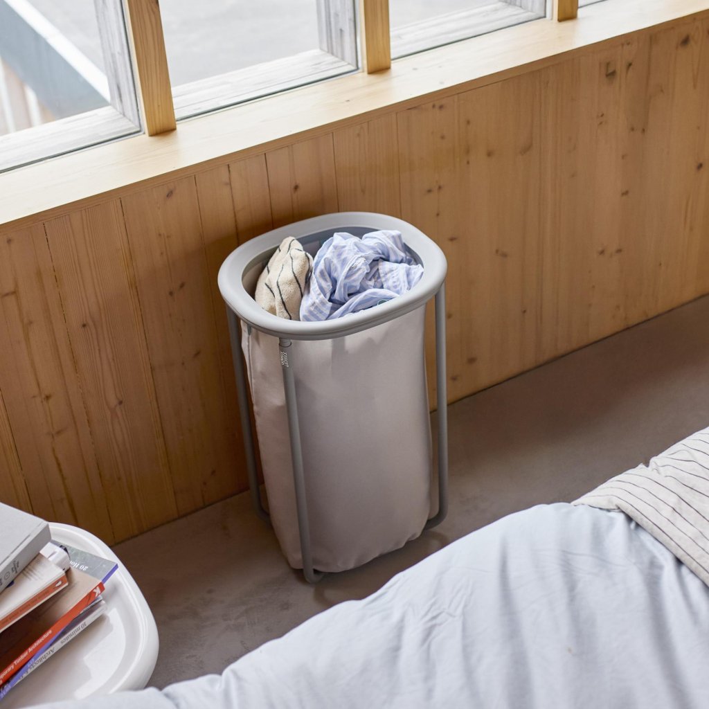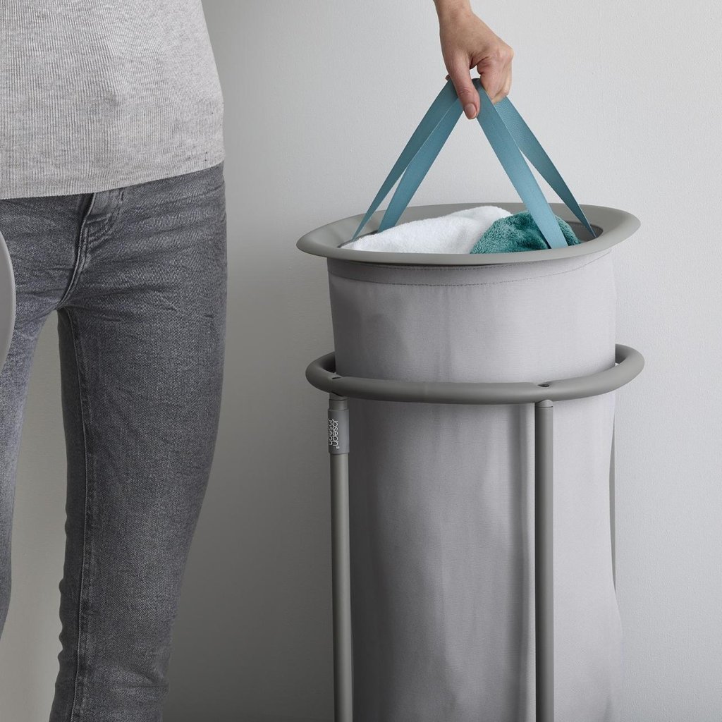 - Po wysypaniu prania worek można łatwo włożyć z powrotem do konstrukcji kosza, co oszczędza czas i wysiłek przy codziennym użytkowaniu.