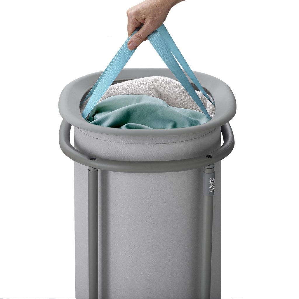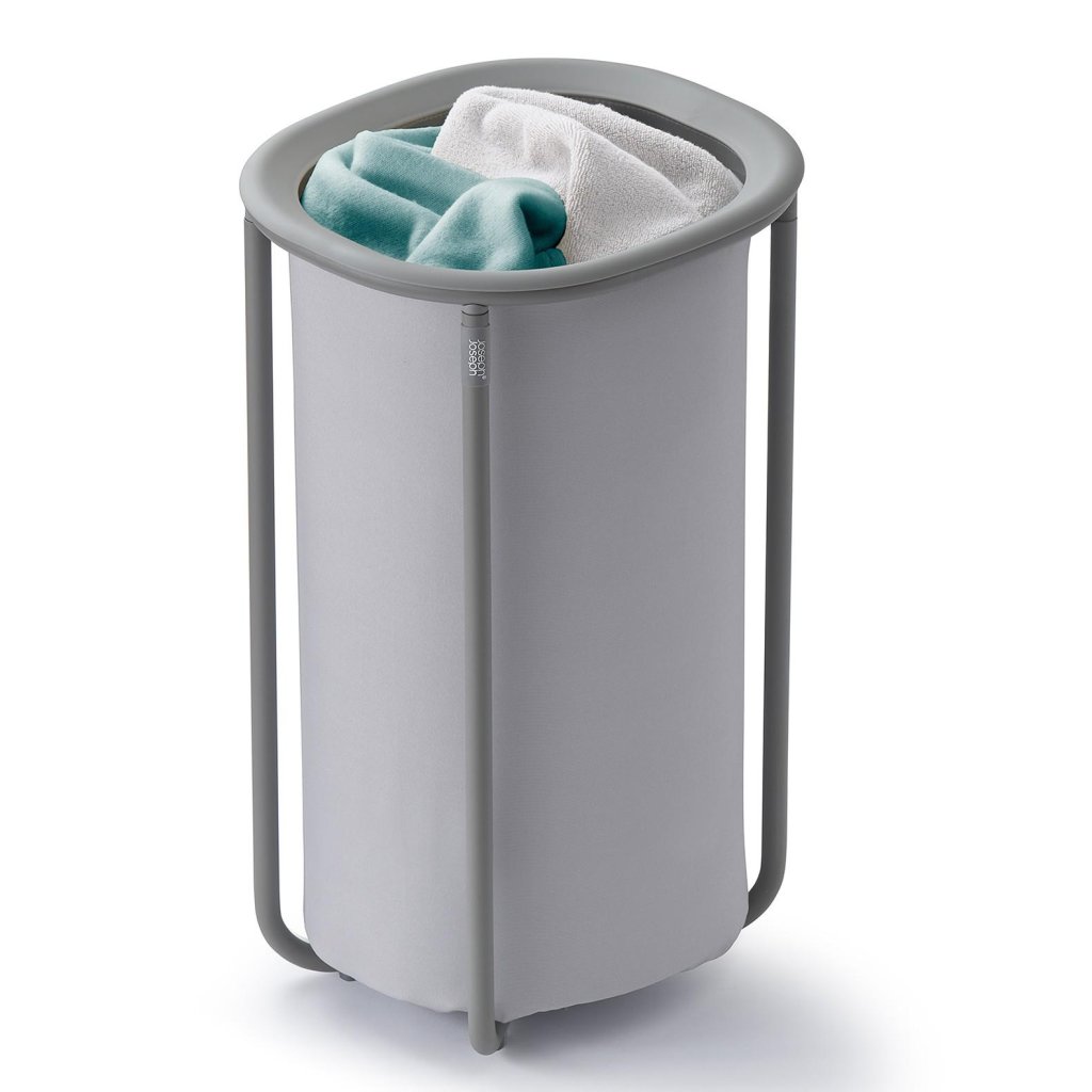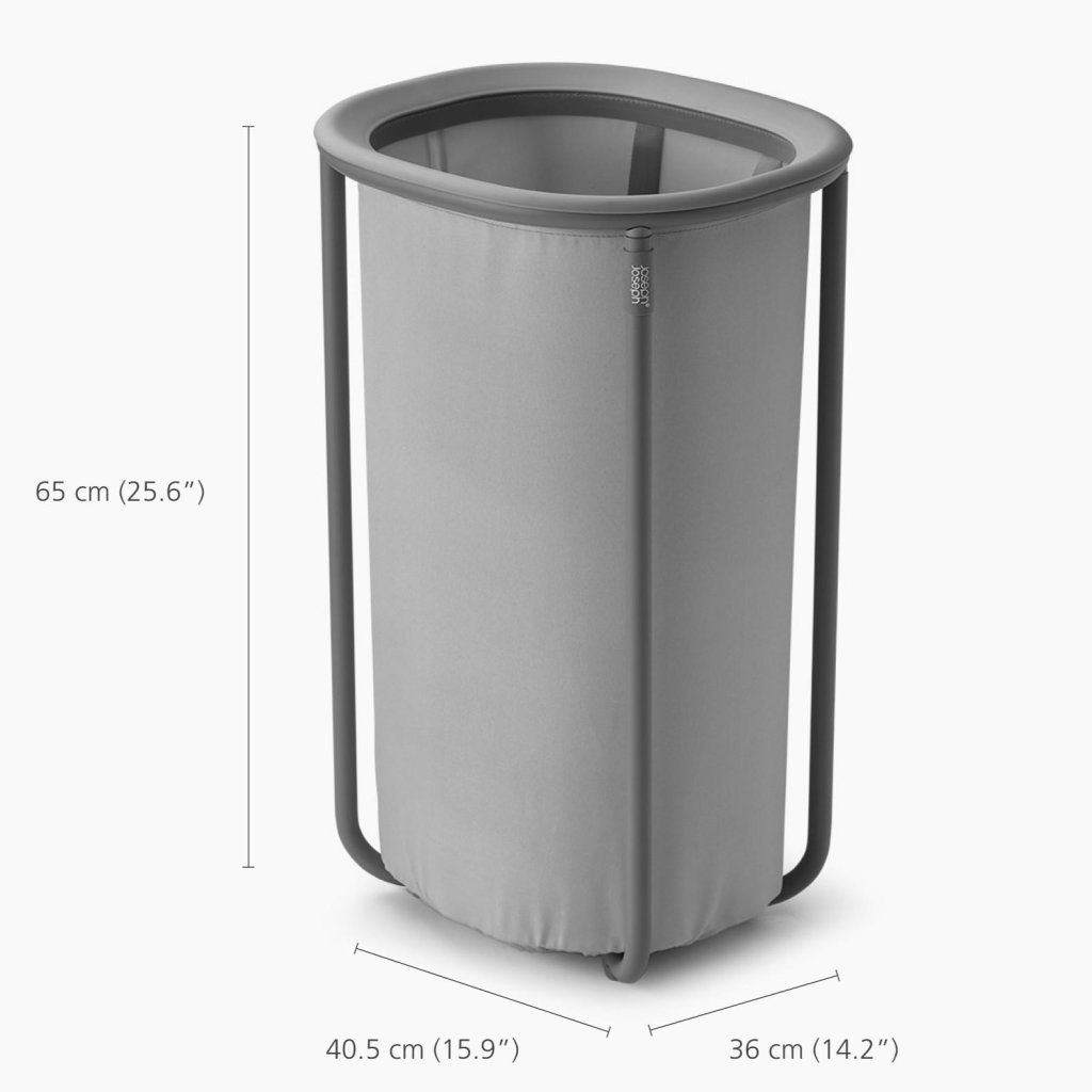 - Kosz na pranie Joseph Joseph DUO o pojemności 50 litrów oferuje praktyczne i eleganckie rozwiązanie do codziennego przechowywania brudnych ubrań w domu.