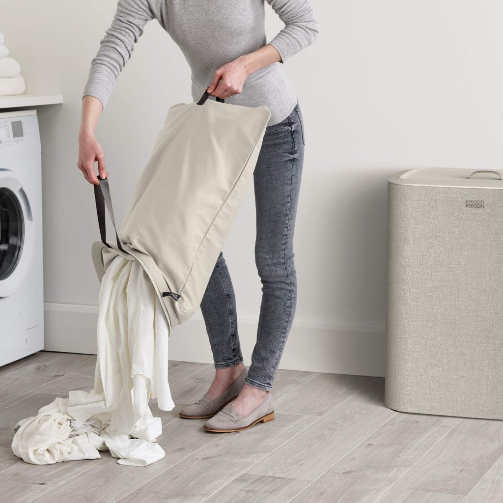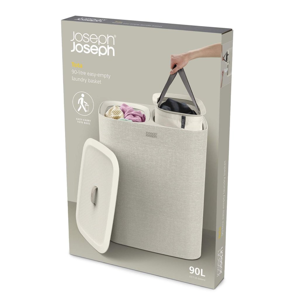 - Kosz na pranie Joseph Joseph TOTA to praktyczne i eleganckie rozwiązanie do sortowania brudnej bielizny w sypialni, łazience lub pomieszczeniu gospodarczym.