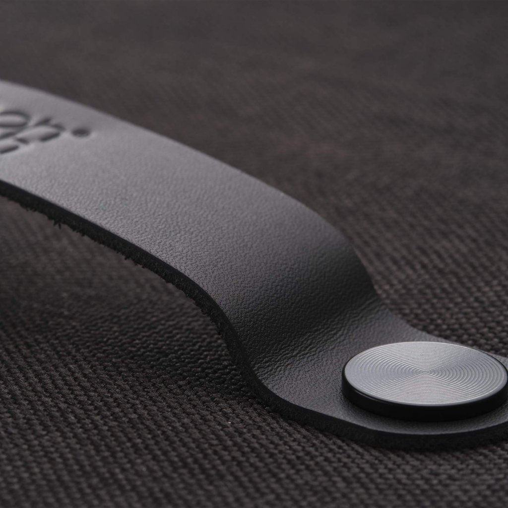 - Pokrywa pokryta tkaniną jest wyposażona w skórzany uchwyt, który ułatwia obsługę i jednocześnie podkreśla jej wyrafinowany design.