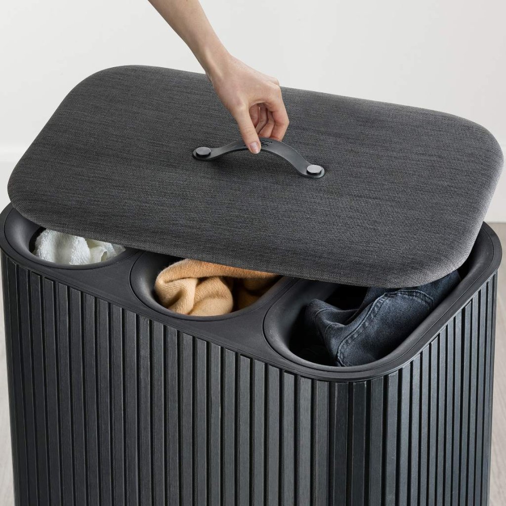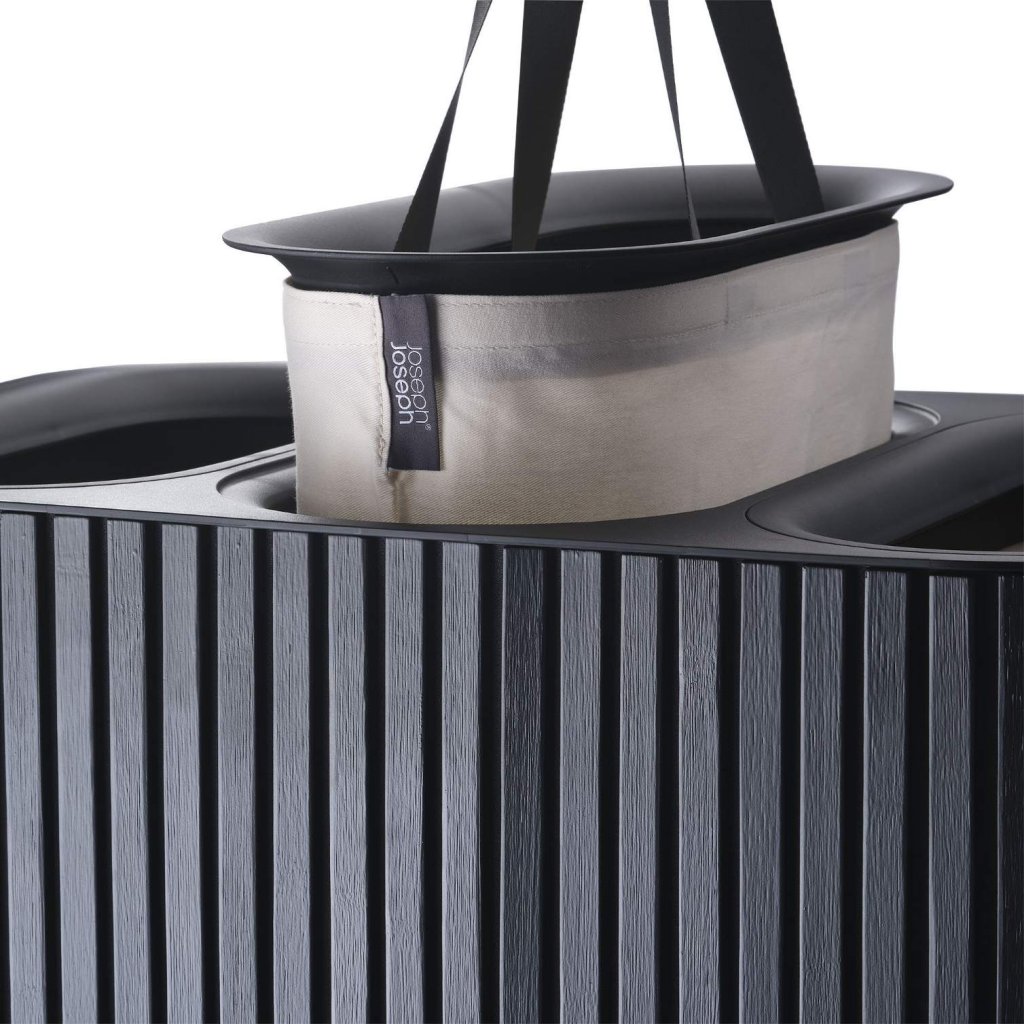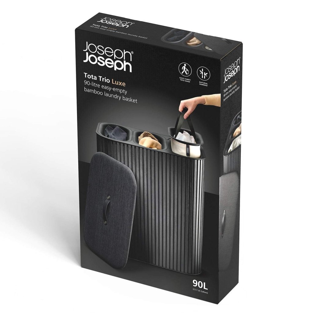 - Kosz na pranie Joseph Joseph TOTA TRIO LUXE w czarnym kolorze to eleganckie i praktyczne rozwiązanie do segregacji prania w nowoczesnym domu.