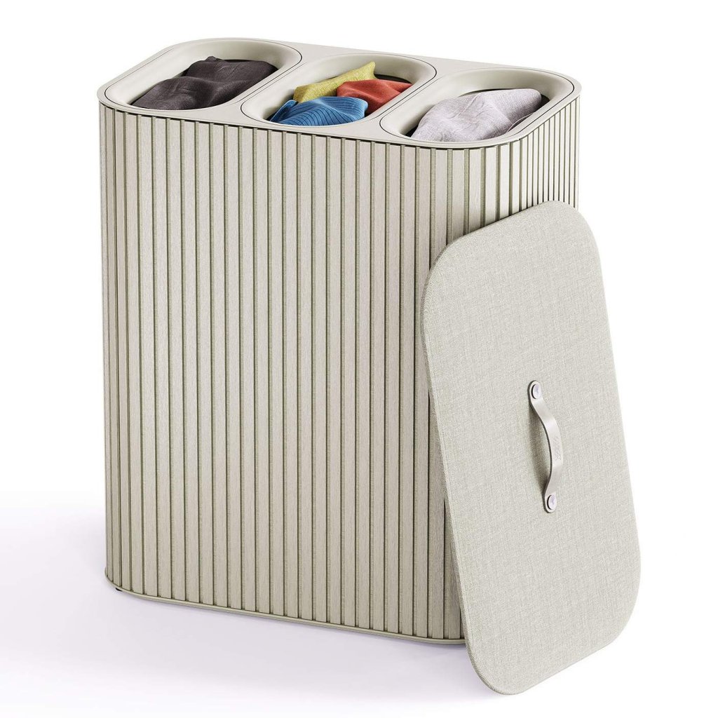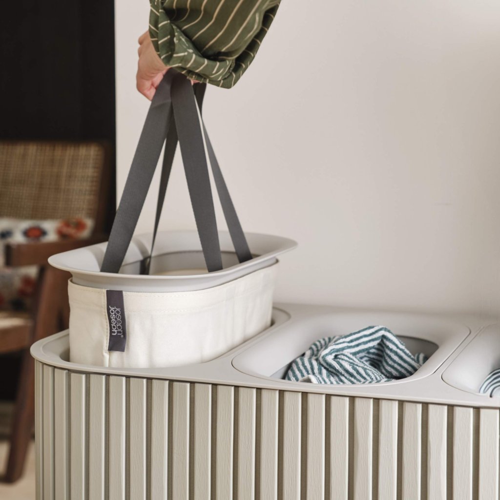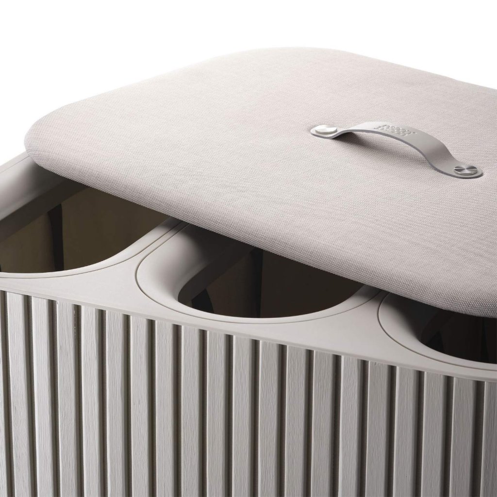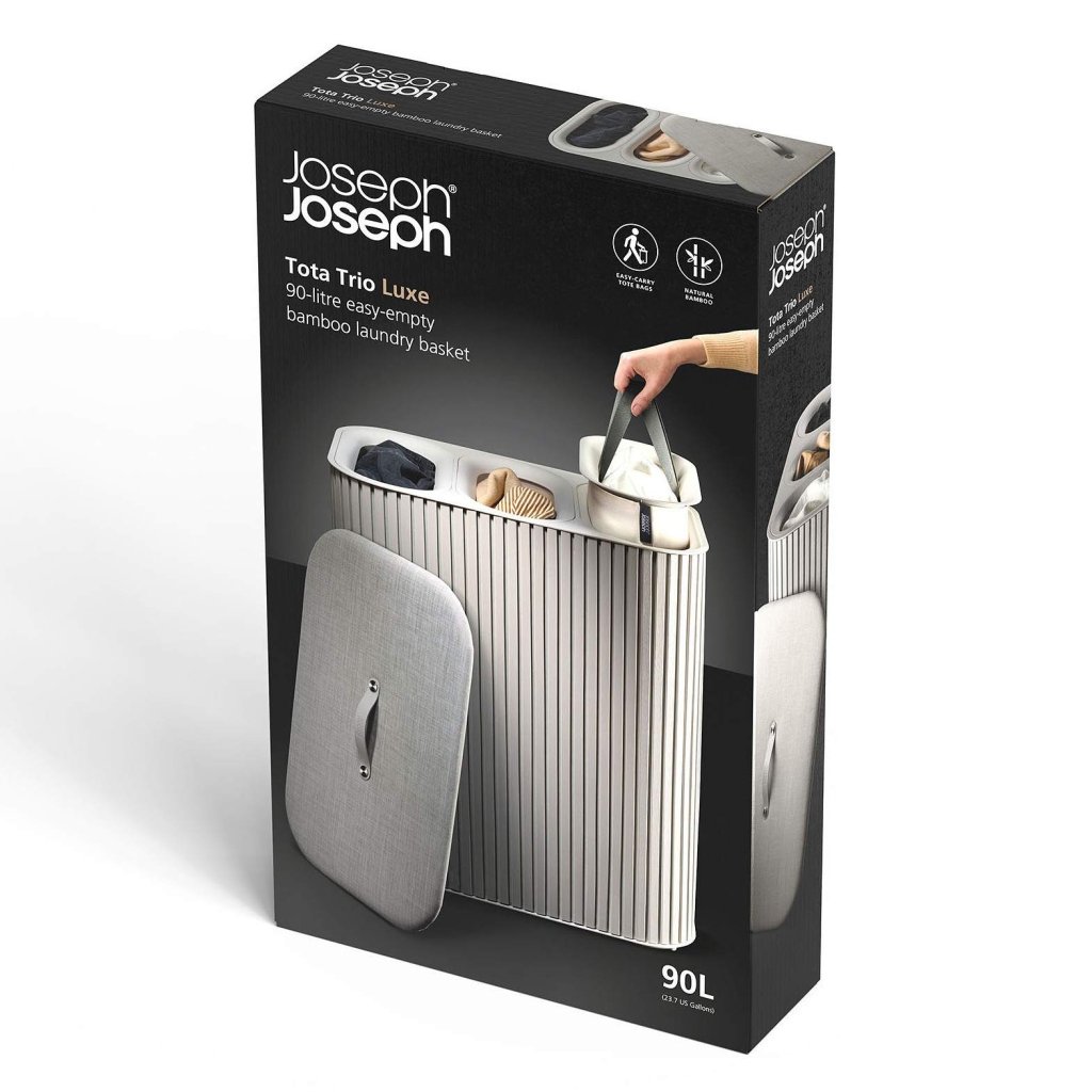- Kosz na pranie Joseph Joseph TOTA TRIO LUXE w kolorze ecru to eleganckie i praktyczne rozwiązanie do sortowania prania w nowoczesnym gospodarstwie domowym.