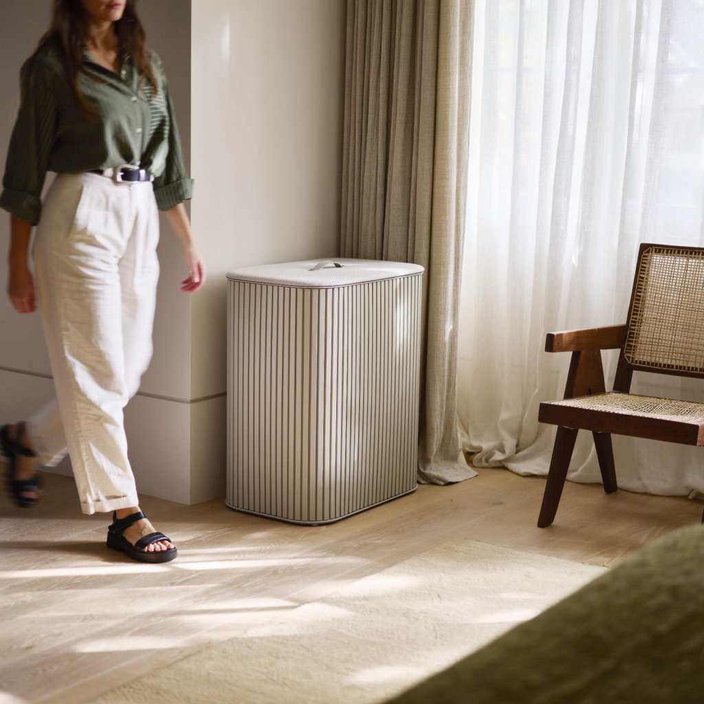 - Zamknięta pokrywa dyskretnie ukrywa brudne pranie i pomaga utrzymać porządek w sypialni lub łazience.