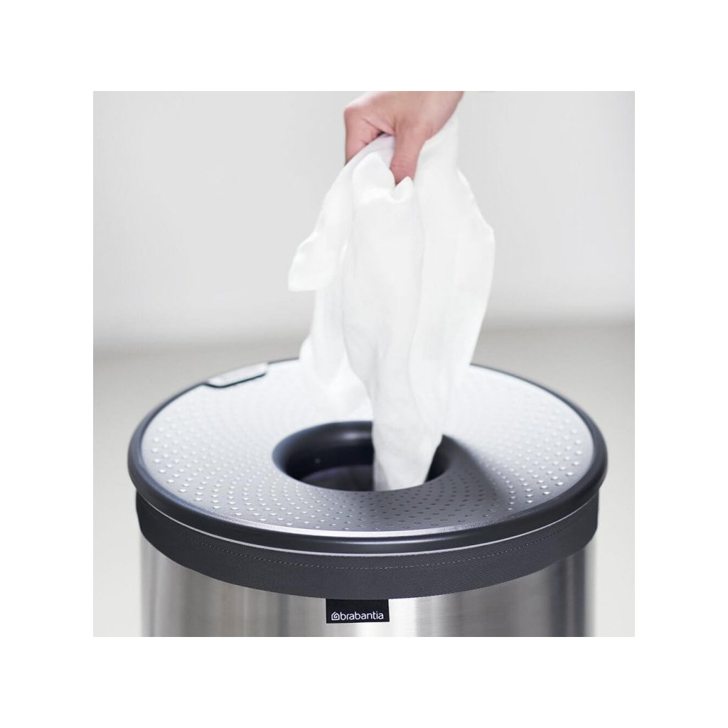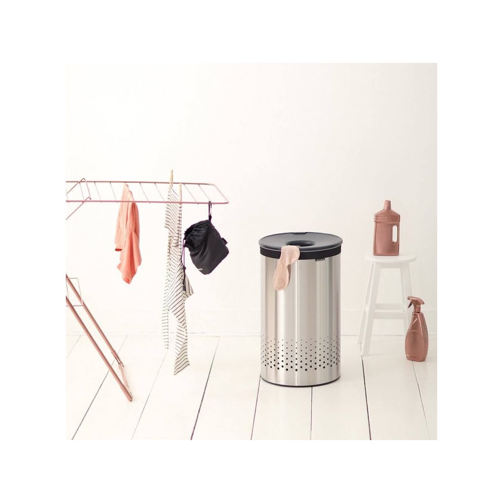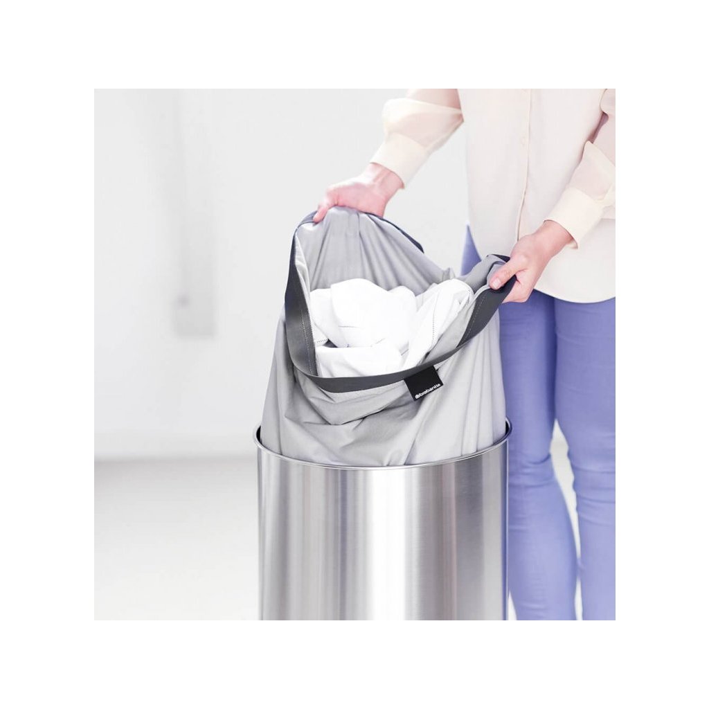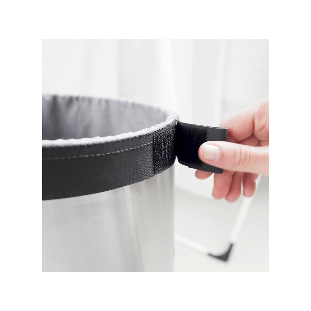 Szukasz praktycznego rozwiązania do przechowywania prania w swoim mieszkaniu lub domu rodzinnym? Kosz na pranie Brabantia posiada sprytny system szybkiego otwierania Quick-Drop, dzięki czemu nie trzeba zdejmować ani wyjmować pokrywy. Mniejsze kawałki można włożyć prosto przez pokrywę, w przypadku większych wystarczy otworzyć pokrywę, która będzie sama stała na krawędzi kosza. Wewnątrz kosza znajduje się bawełniany worek na pranie zapinany na rzep, a od spodu pierścień ochronny zapewniający odpowiednią stabilność.