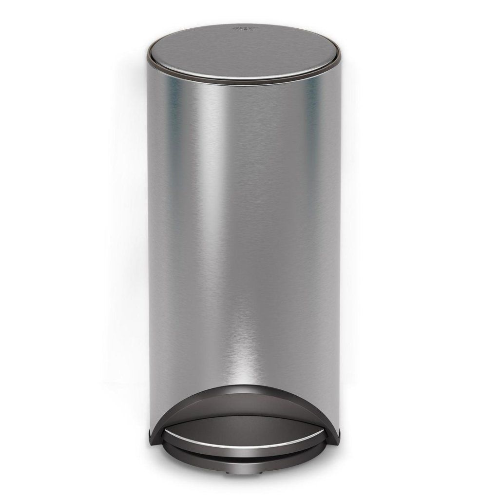 - Przemyślany okrągły kształt pozwala na ukrycie pedału w obrysie kosza, dzięki czemu nie zajmuje dodatkowego miejsca na podłodze.