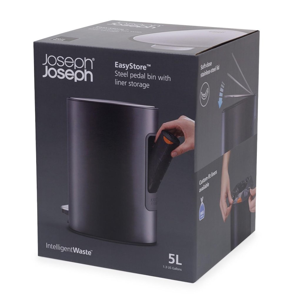 Kosz na śmieci pedałowy EASYSTORE 70595 5 l, czarny, stal, Joseph Joseph