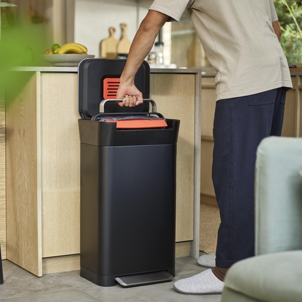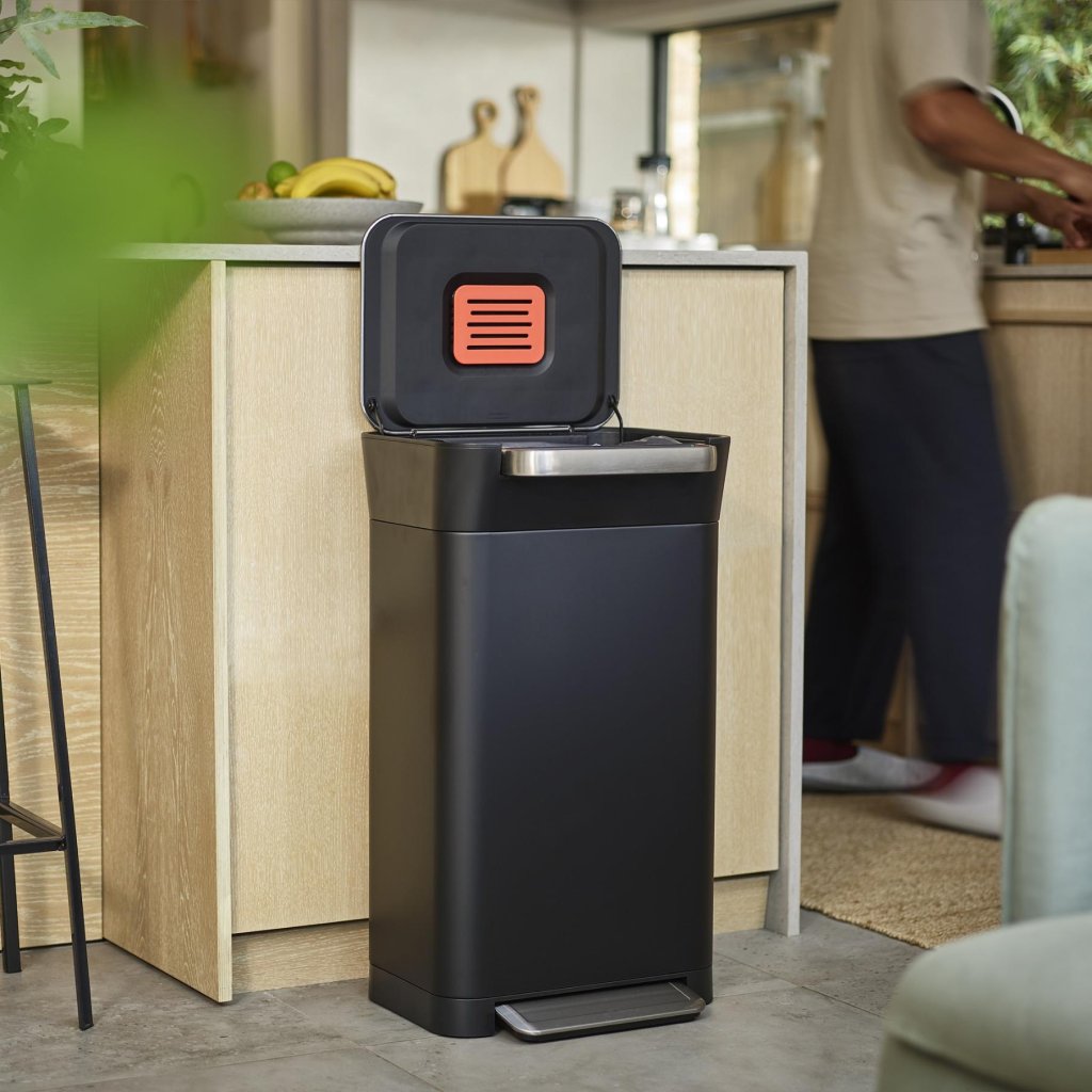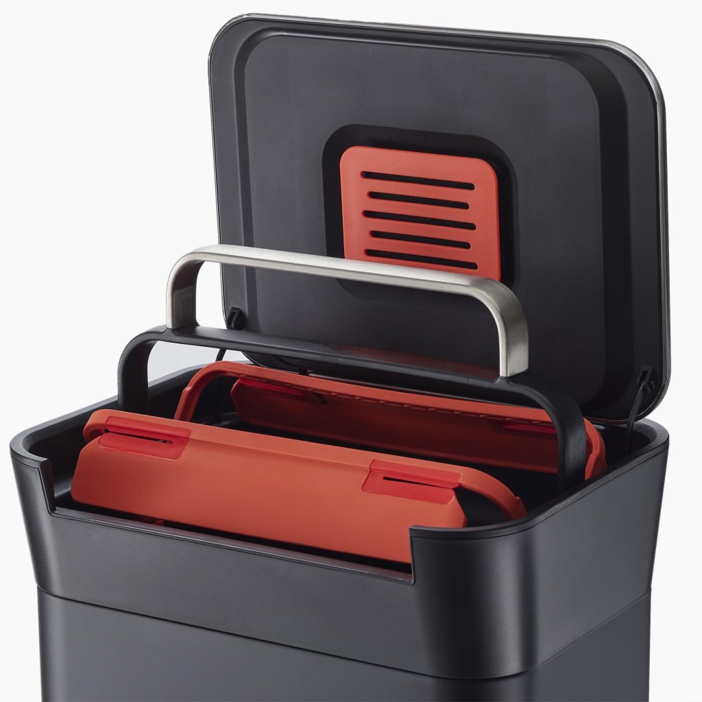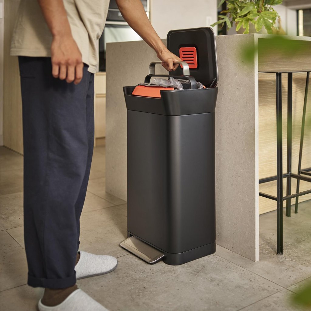 - Kosz jest kompatybilny z workami Joseph Joseph IW4, które są zaprojektowane tak, aby dokładnie pasowały do jego konstrukcji.