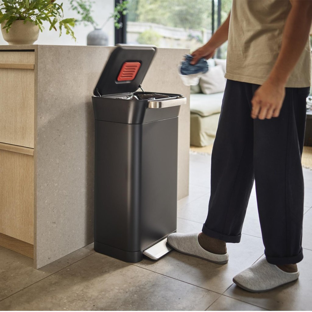 Czy właśnie odkryłeś czarną dziurę na śmieci? Może tak... Wygląda jak zwykły trzydziestolitrowy kosz. A potem okazuje się, że potrafi pomieścić aż 90 litrów odpadów. Higieniczny system zgniatania działa tak prosto, że aż żal, że nie znaliście go wcześniej. Zamiast przepełnionego worka po kilku dniach, masz wciąż dodatkowe miejsce. I poczucie, że właśnie przechytrzyłeś własny dom.