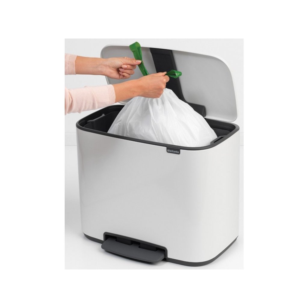 - W zestawie specjalne worki pasujące wyłącznie do pojemnika BO - krawędź worka pozostaje ukryta pod pokrywą pojemnika