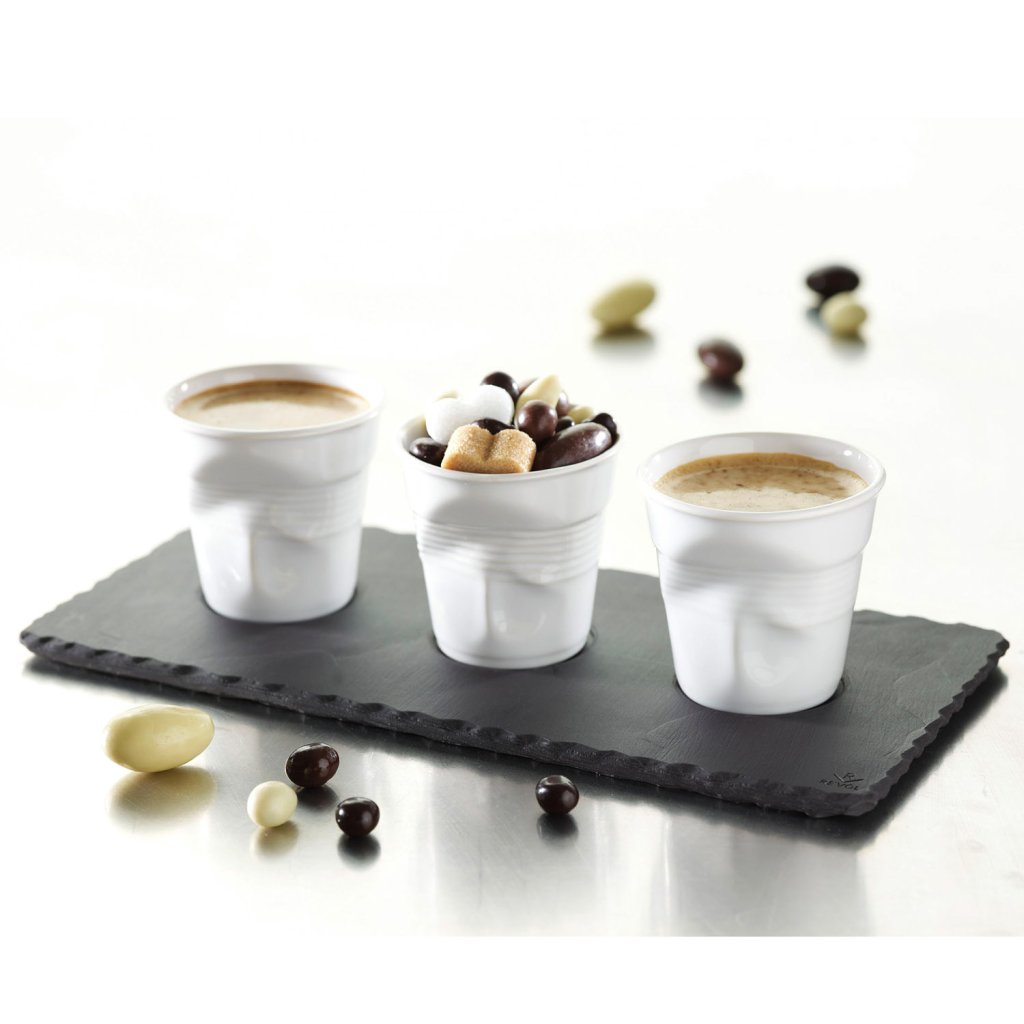 Wielofunkcyjna filiżanka do espresso z serii Froissés oczarowała swoim kształtem i kolorowymi wariantami już tyle osób... W zależności od Twojego stylu i kreatywności możesz ją wykorzystać nie tylko do serwowania kawy i espresso, ale także do sosów do mięs, do podawania lodów czy oryginalnych korków w stylu francuskim. Sprawdzi się również jako fajna forma do pieczenia muffinek i mini babeczek. Jeśli jesteś zwolennikiem oryginalnego designu w domu, możesz wykorzystać go jako kubek na kredki lub sadzarkę na kaktusy. Wyobraźnia nie zna granic.