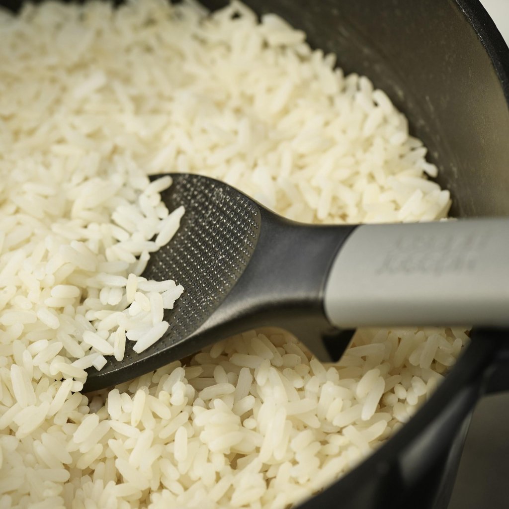 - Łyżka do ryżu Joseph Joseph ELEVATE FUSION to praktyczny pomocnik kuchenny przeznaczony do nabierania, spulchniania i serwowania ryżu oraz innych dodatków.