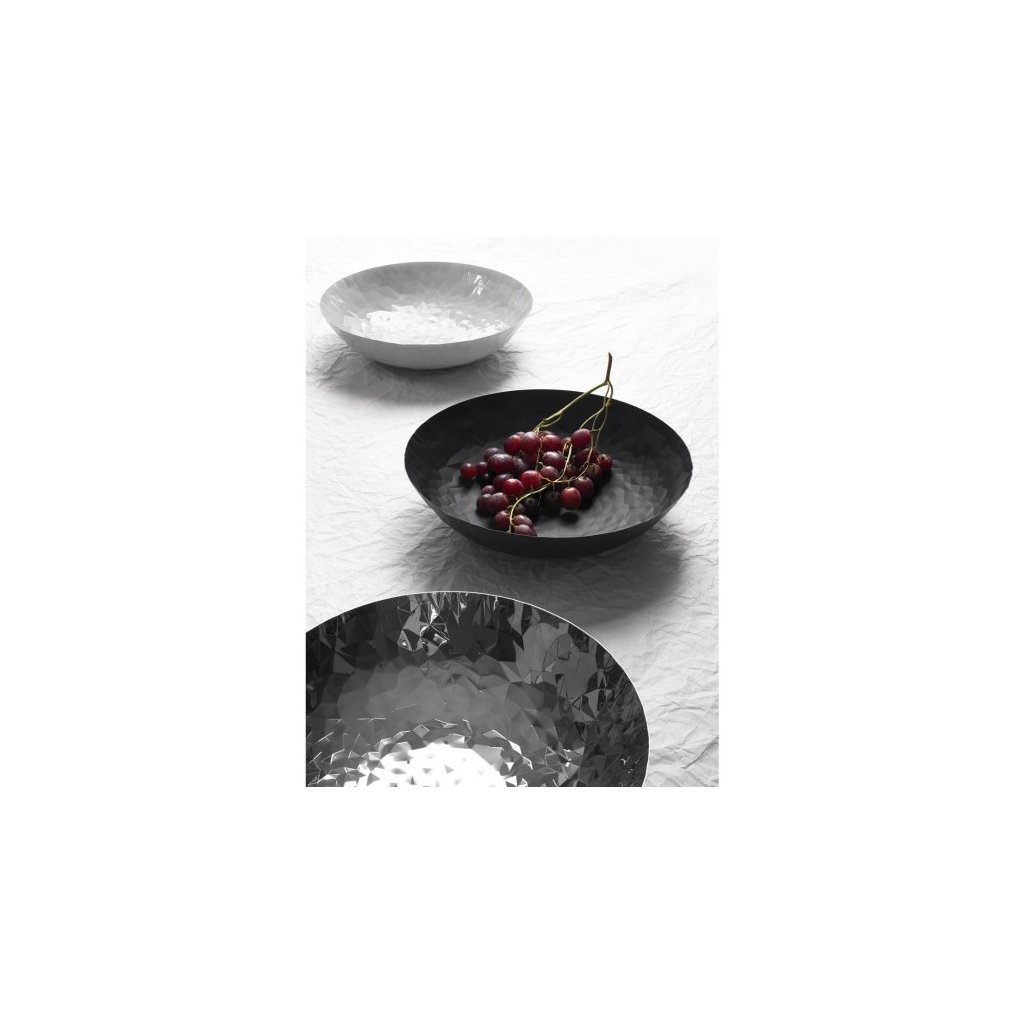 Miska na owoce Joy No.1, zaprojektowana przez Claudię Raimondo, stworzona w nowej technologii - obróbki na zimno stali nierdzewnej. Kształt misy tworzy grę refleksów świetlnych, tak jak to znamy z przeszłości z kutych przedmiotów z metali szlachetnych. Tekstura zatem przywołuje tło cyfrowego świata i reinterpretuje stal grą na nieuchwytność designu.