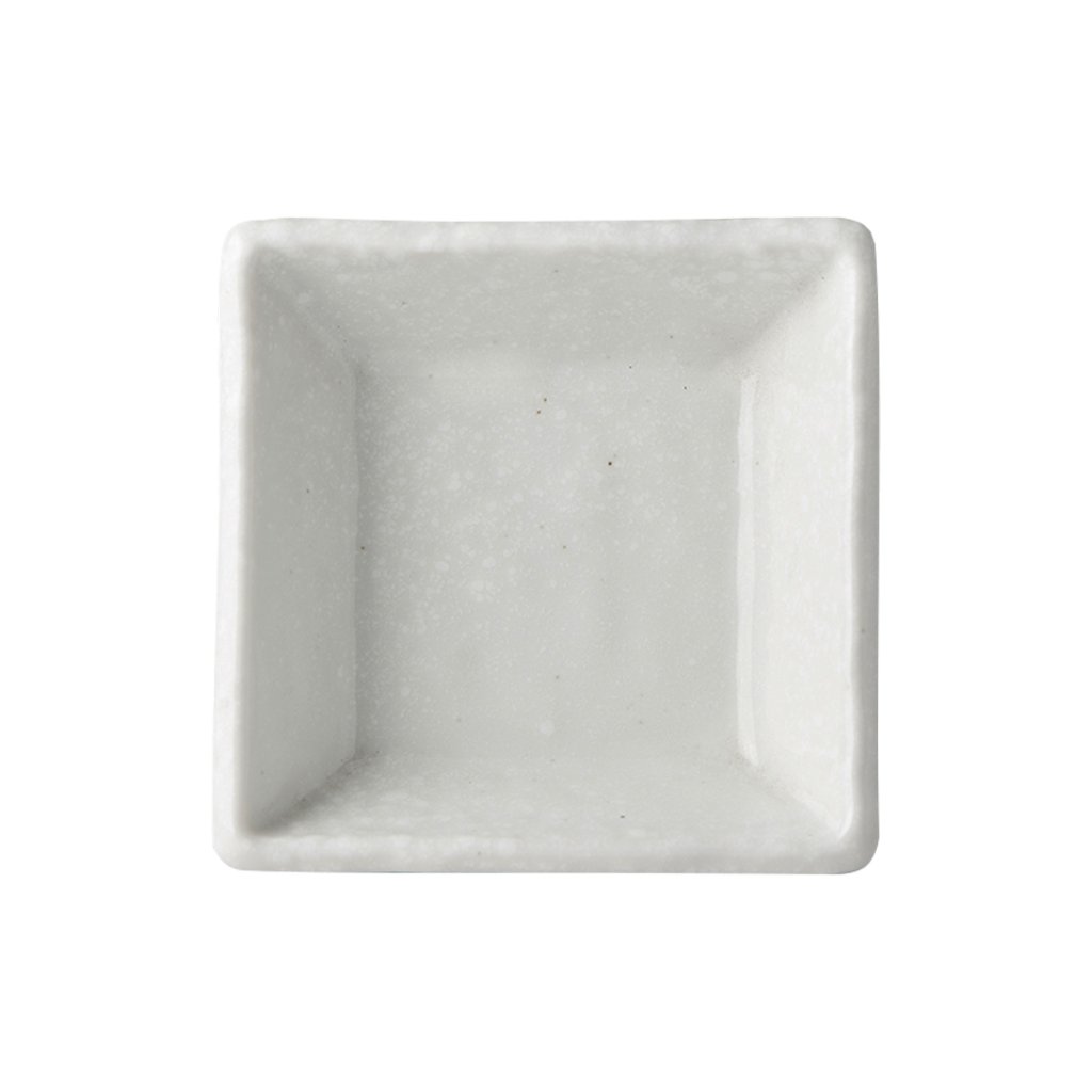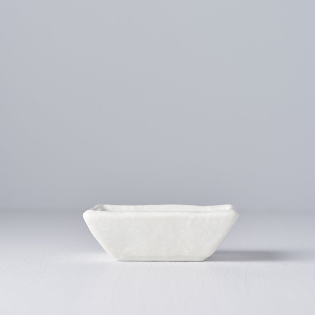 Miska ma kwadratowy kształt i biały kolor z matowym wykończeniem. Idealnie nadaje się do serwowania sosów, dipów i sals.