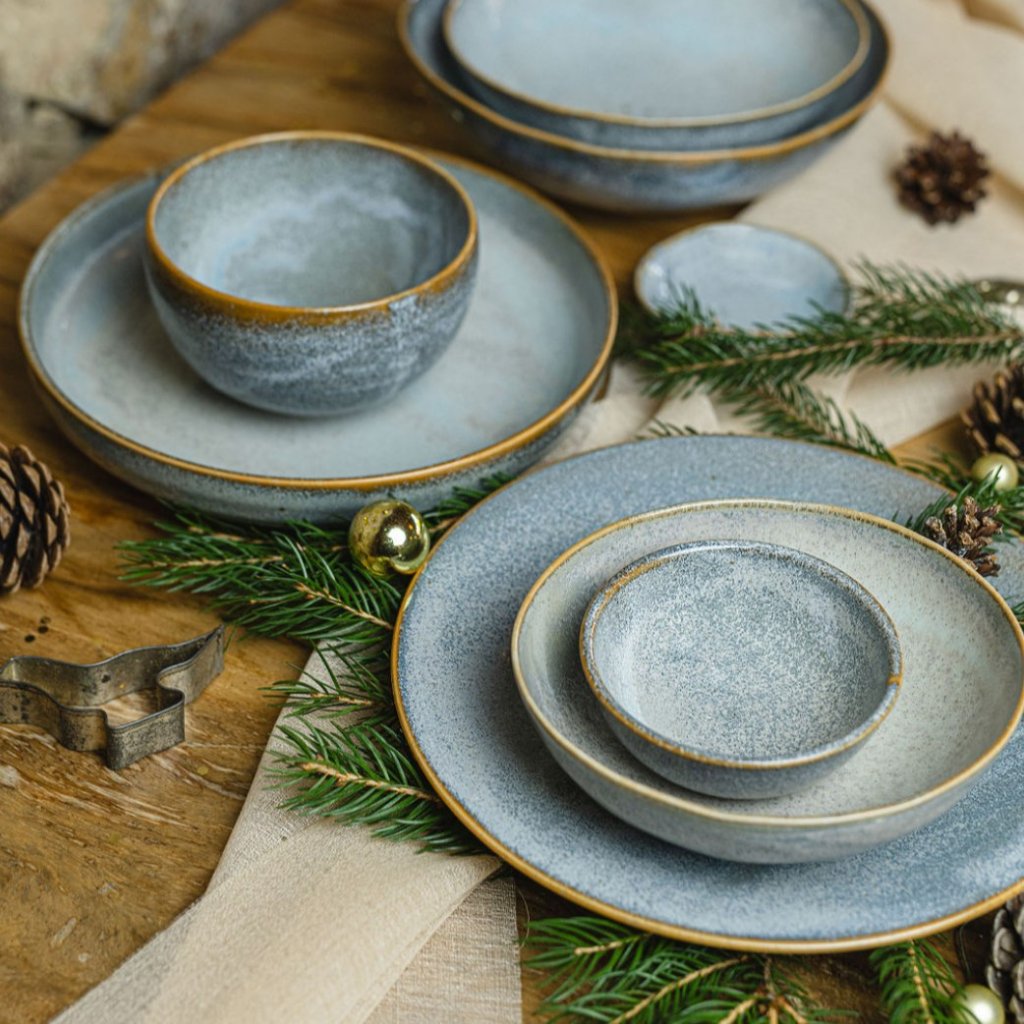W tym zestawie znajdziesz małą miskę ramekin z kolekcji Steel Grey o średnicy 8,5 cm. Błyszcząca miska ma szaro-niebieski kolor i złotą linię.
