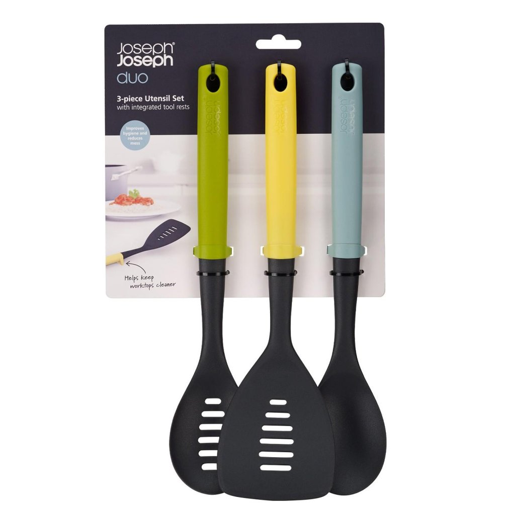 - Trzyczęściowy zestaw narzędzi kuchennych Joseph Joseph DUO OPAL to praktyczne rozwiązanie do codziennego gotowania, łączące funkcjonalność, nowoczesny design i łatwą konserwację.