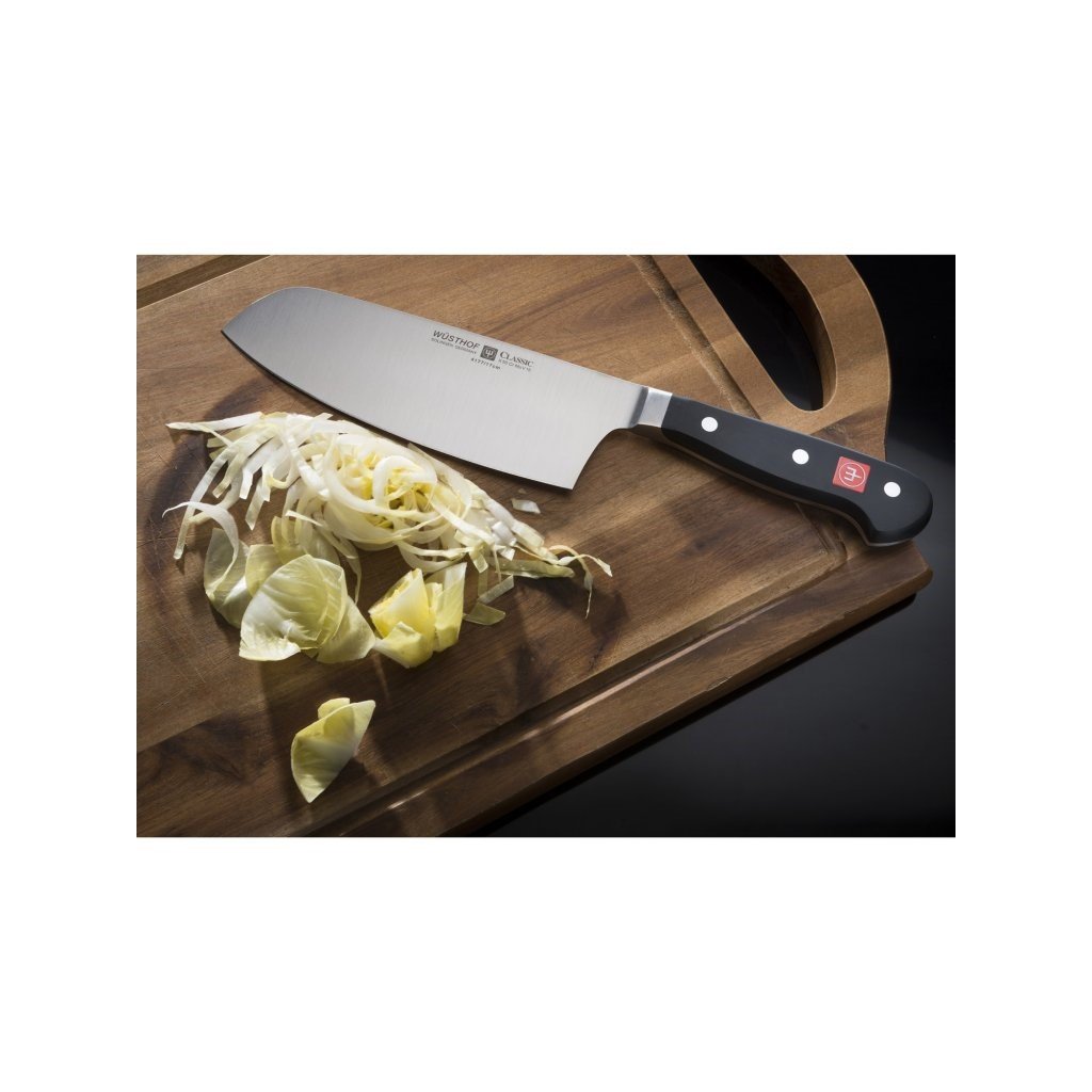 Seria noży Classic doskonale prezentuje sztukę wytwarzania noży firmy WÜSTHOF. Jest to najbardziej popularna seria w ofercie WÜSTHOF i to nie tylko ze względu na wysoki komfort użytkowania. Są to klasyczne noże z nitowanymi rękojeściami, których ostrza wykute są z jednego kawałka stopu stali nierdzewnej X50CrMoV15. Dzięki zastosowaniu wysokiej jakości materiałów oraz precyzyjnemu szlifowi, charakteryzuje się wysoką i długotrwałą ostrością. Wysoce funkcjonalne noże Classic są wykonane z wielką starannością, aż do ostatniego detalu. Dokładnie tak, jak się tego oczekuje od noży Solingen. Po pierwszym użyciu, nie będziesz chciał innego noża..