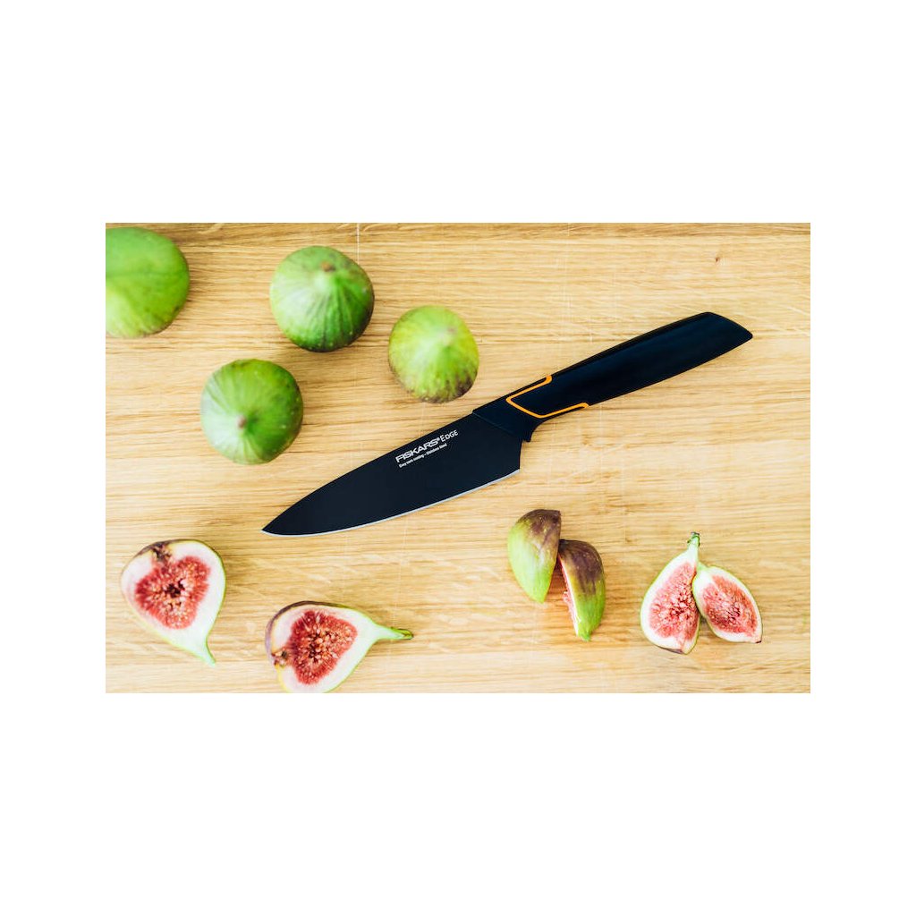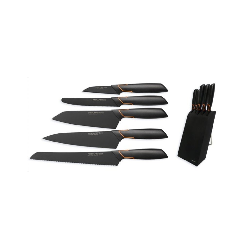 Seria noży Fiskars Edge oferuje elegancki, nowoczesny wygląd i innowacyjne funkcje, które więcej niż ułatwiają pracę w kuchni. Ostrza wykonane są z wysokiej jakości stali nierdzewnej ze zwężoną krawędzią dla długotrwałej ostrości. Stanowią one unikalną kombinację designu noży z całego świata.