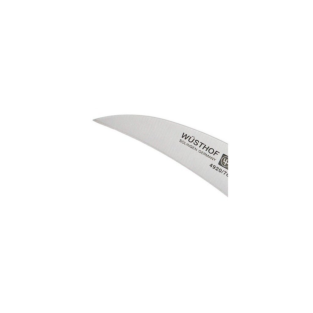 Noże WÜSTHOF produkowane są z wysokiej jakości niemieckiej stali X50CrMoV15, która zawiera ok. 0,5 % węgla oraz pierwiastki stopowe: chrom, molibden i wanad. Dzięki dodatkowi chromu jest odporny na korozję, co jest pożądane w przypadku noży kuchennych.