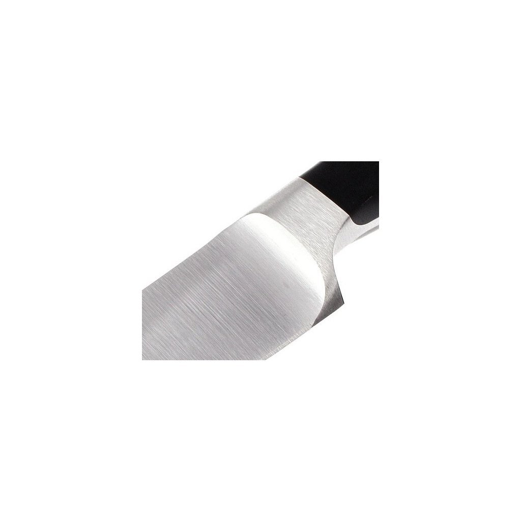 Stabilne ostrze i idealna geometria noża zapewniają wyjątkową wydajność cięcia i precyzyjną kontrolę cięcia. Ostry kąt zapewnia jeszcze większą ostrość, co sprawia, że krojenie staje się przyjemniejsze. Dzięki klinowemu szlifowi, nóż bez trudu wbija się w żywność.
