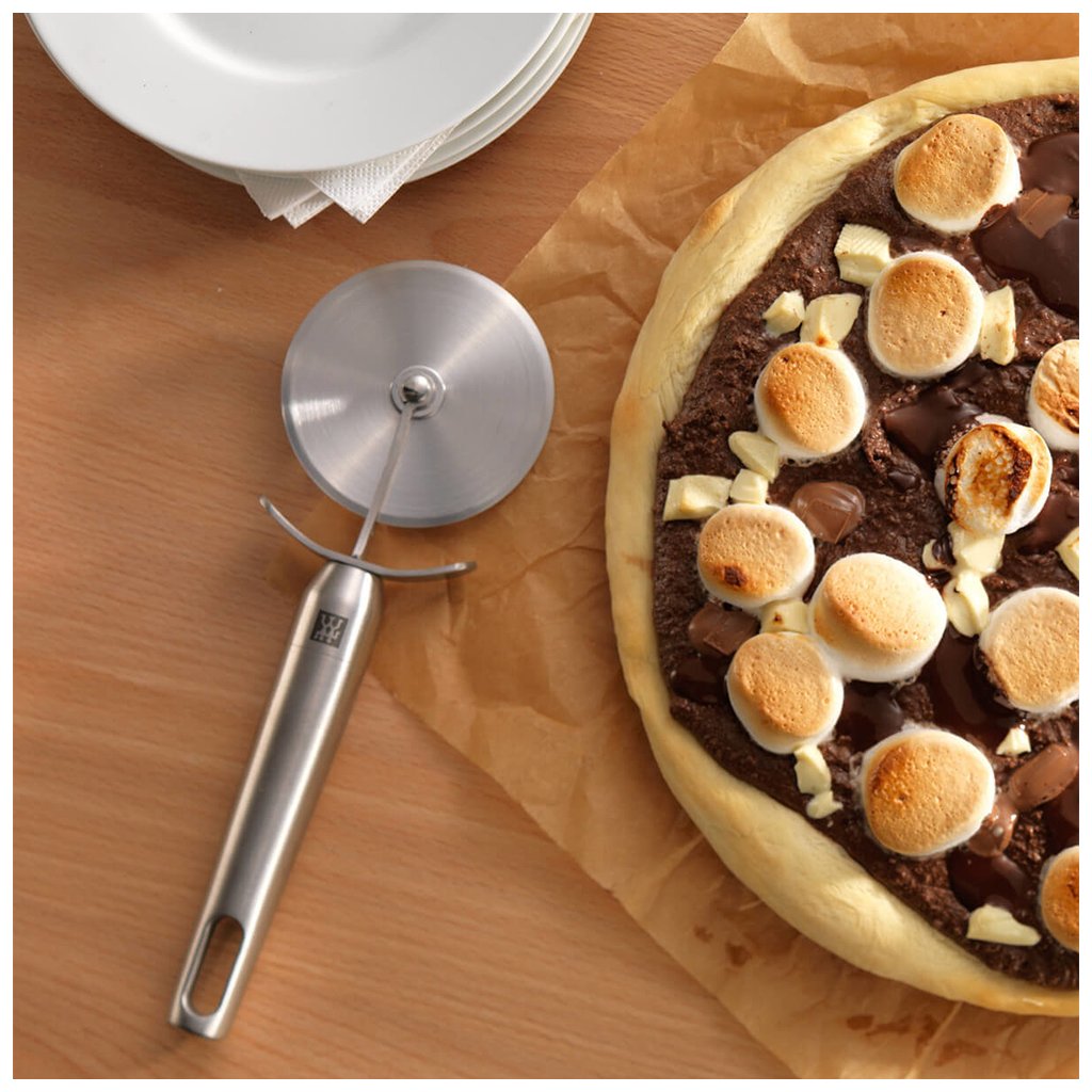 Niezbędne narzędzie dla wszystkich miłośników pizzy. Dzięki specjalnej obróbce powierzchni, rękojeść nie wyślizguje się z dłoni, a przed ostrymi ostrzami chroni ją praktyczna osłona. Dzięki solidnej konstrukcji ze stali nierdzewnej krojenie jest dziecinnie proste, dzięki czemu można kroić nie tylko pizzę, ale również delikatniejsze ciasta czy niektóre desery.