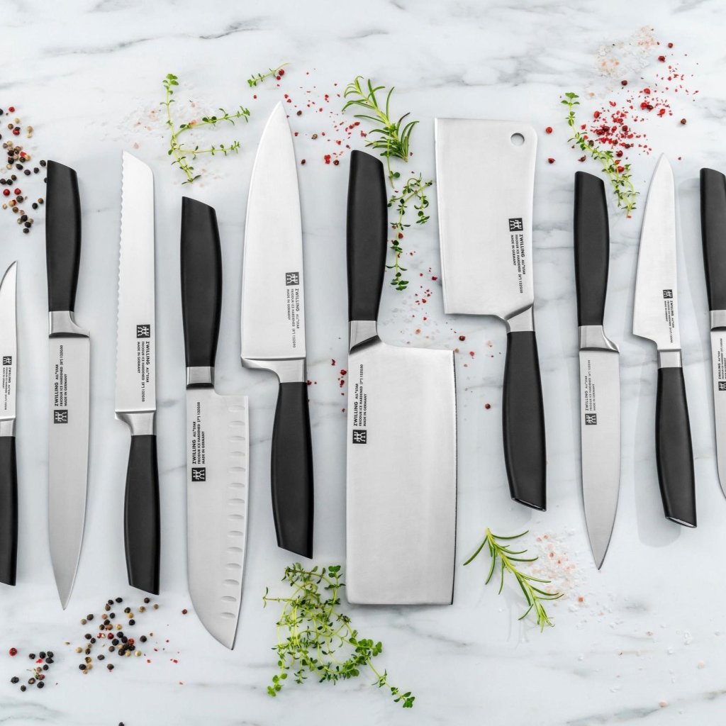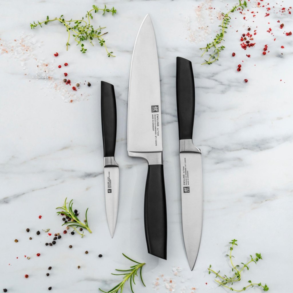 - nowoczesny design z dekoracyjną aplikacją w kolorze premium z logo Zwilling na podstawie uchwytu (w tej wersji w kolorze czarnym)