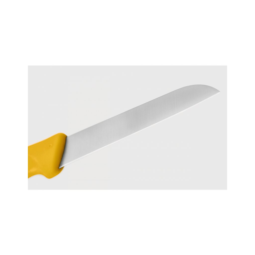 Klasyczny nóż uniwersalny: idealny do krojenia, czyszczenia i dekorowania owoców i warzyw. Ten nóż do warzyw to uniwersalne narzędzie kuchenne z krótkim ostrzem o praktycznym kształcie. Oczyści marchewki, obierze jabłka, pokroi szalotki - potrafi wykonać wiele zadań i doskonale sobie radzi. Wraz z nożem szefa kuchni i nożem do chleba, nóż do warzyw jest niezbędnym elementem wyposażenia, bez którego żaden kucharz nie powinien się obejść.