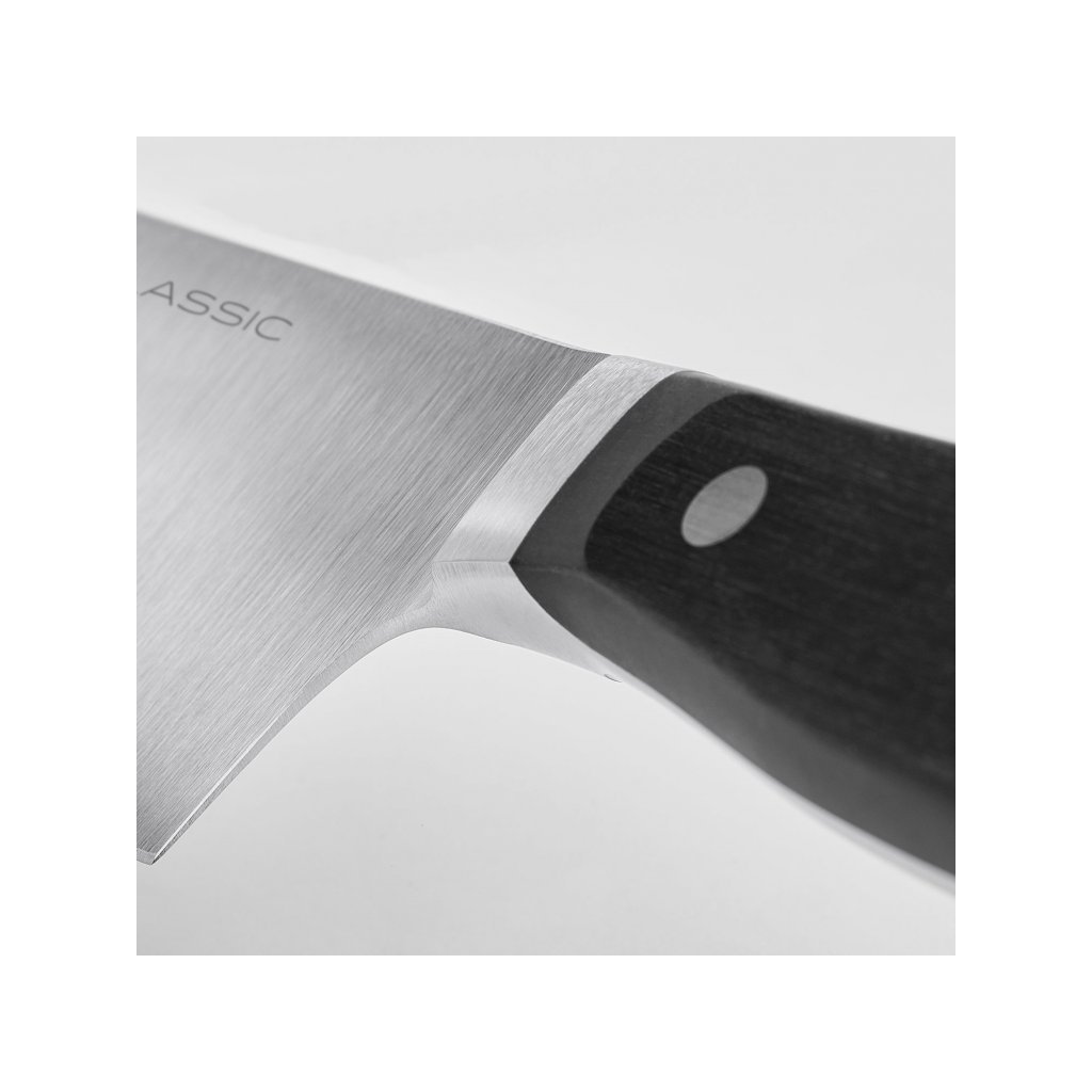 Kształt ostrza tego noża wywodzi się z Japonii. Ten uniwersalny tasak do krojenia w plastry, kostki i siekania może być używany do warzyw, mięsa i owoców. Wydrążone ząbkowane ostrze tworzy kieszenie powietrzne, które zapobiegają przywieraniu bardzo cienkich lub miękkich plastrów do ostrza. Nóż ten jest częścią serii Classic, w której można znaleźć noże wykute z jednego kawałka wysokiej jakości stali, o lekkiej konstrukcji, która sprawia, że ostrze jest bardziej elastyczne i zmniejsza zmęczenie podczas krojenia. Każde ostrze jest kontrolowane laserowo i wyjątkowo ostre. Noże wyposażone są w ergonomicznie ukształtowaną rękojeść z trzema nitami. Ze względów higienicznych pomiędzy rękojeścią a stalą nie ma szczeliny.