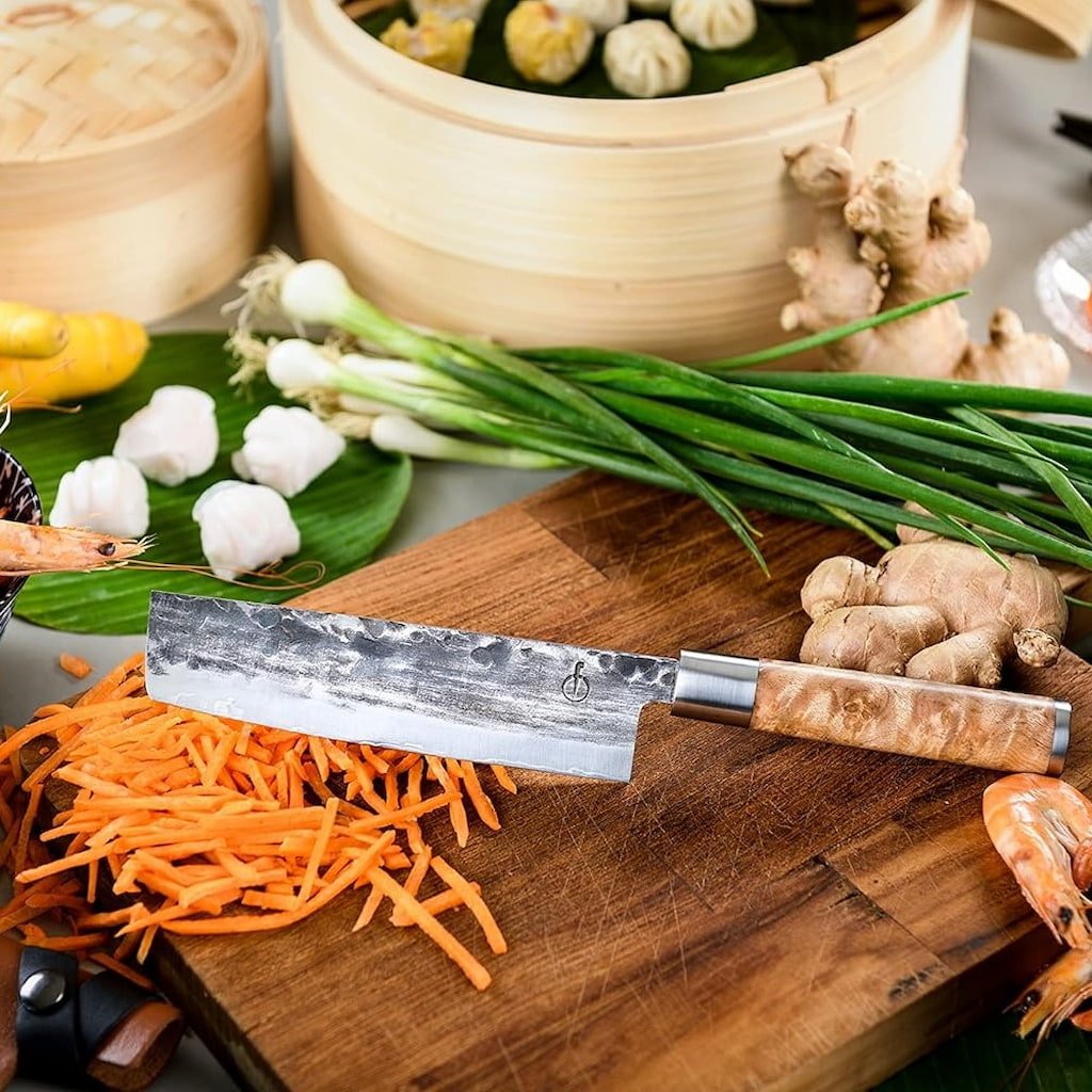 - tasak doskonale nadaje się do przygotowywania dań kuchni azjatyckiej, gdzie liczy się szybkość i precyzja przy obróbce dużych ilości warzyw.