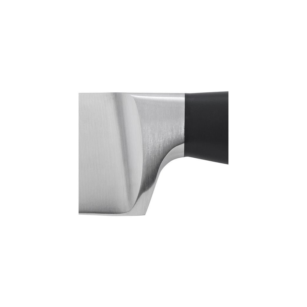 Standardowa nasada noża z lekkim wgłębieniem dla lepszej ergonomii chwytu jest zintegrowana jako część ostrza w jednym kawałku stali. Zapewnia prawidłowe rozłożenie ciężaru i gwarantuje precyzyjną kontrolę noża.