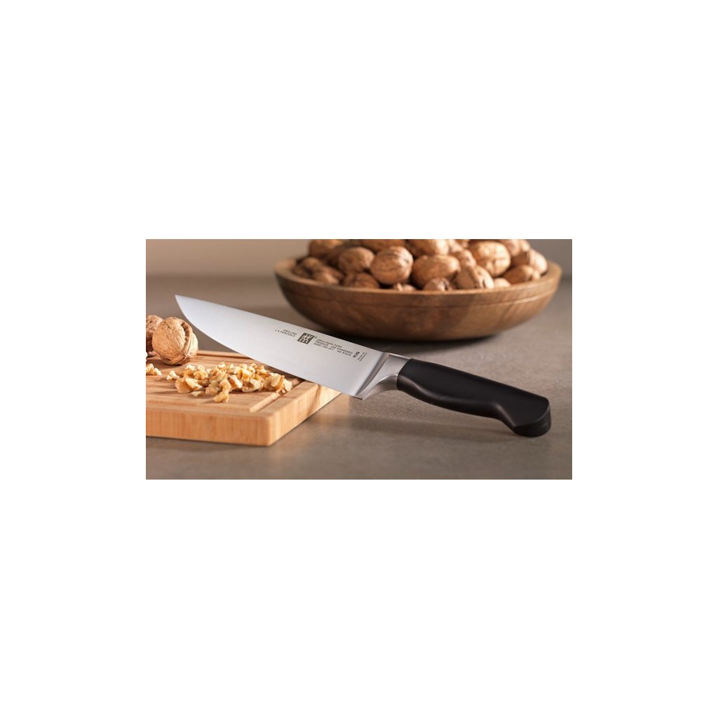 Nóż szefa kuchni ZWILLING® Pure to solidny, wytrzymały nóż z szerokim ostrzem o cienkiej, ale trwałej krawędzi. Wszechstronne urządzenie dla profesjonalistów i kucharzy hobbystów, którym oczyścisz warzywa, ale także posiekasz zioła lub kotlety.