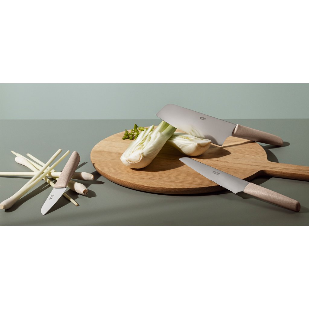 - Wytrzymały materiał - kompozyt (50% włókna pszenicy i 50% tworzywa sztucznego), stal wanadowo-molibdenowa